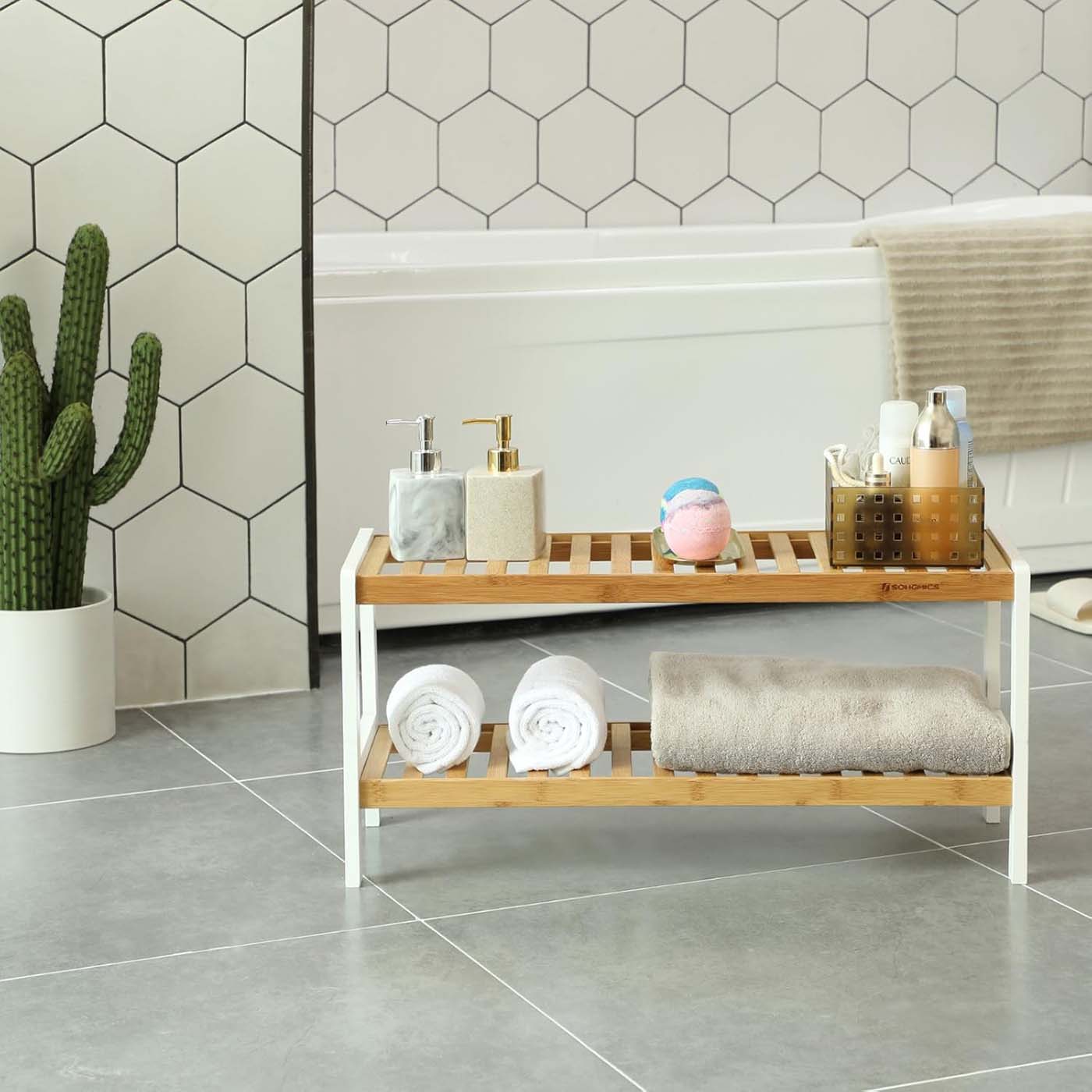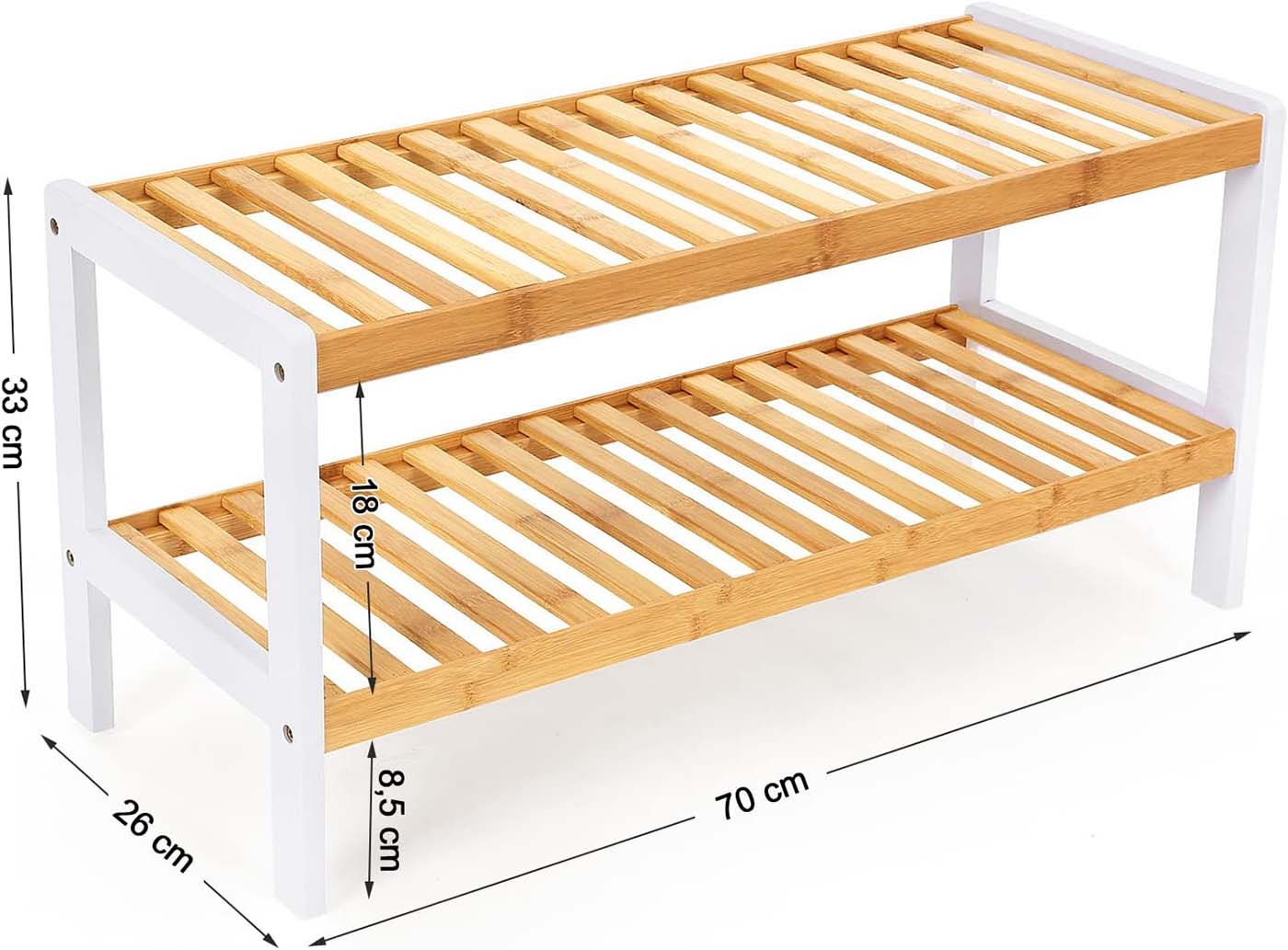SONGMICS 2-Tier Bamboo Shoe Rack, Storage Shelf, 70 x 26 x 33 cm LBS02H