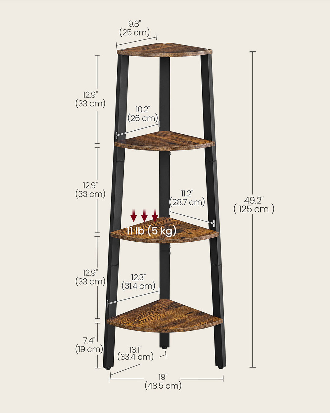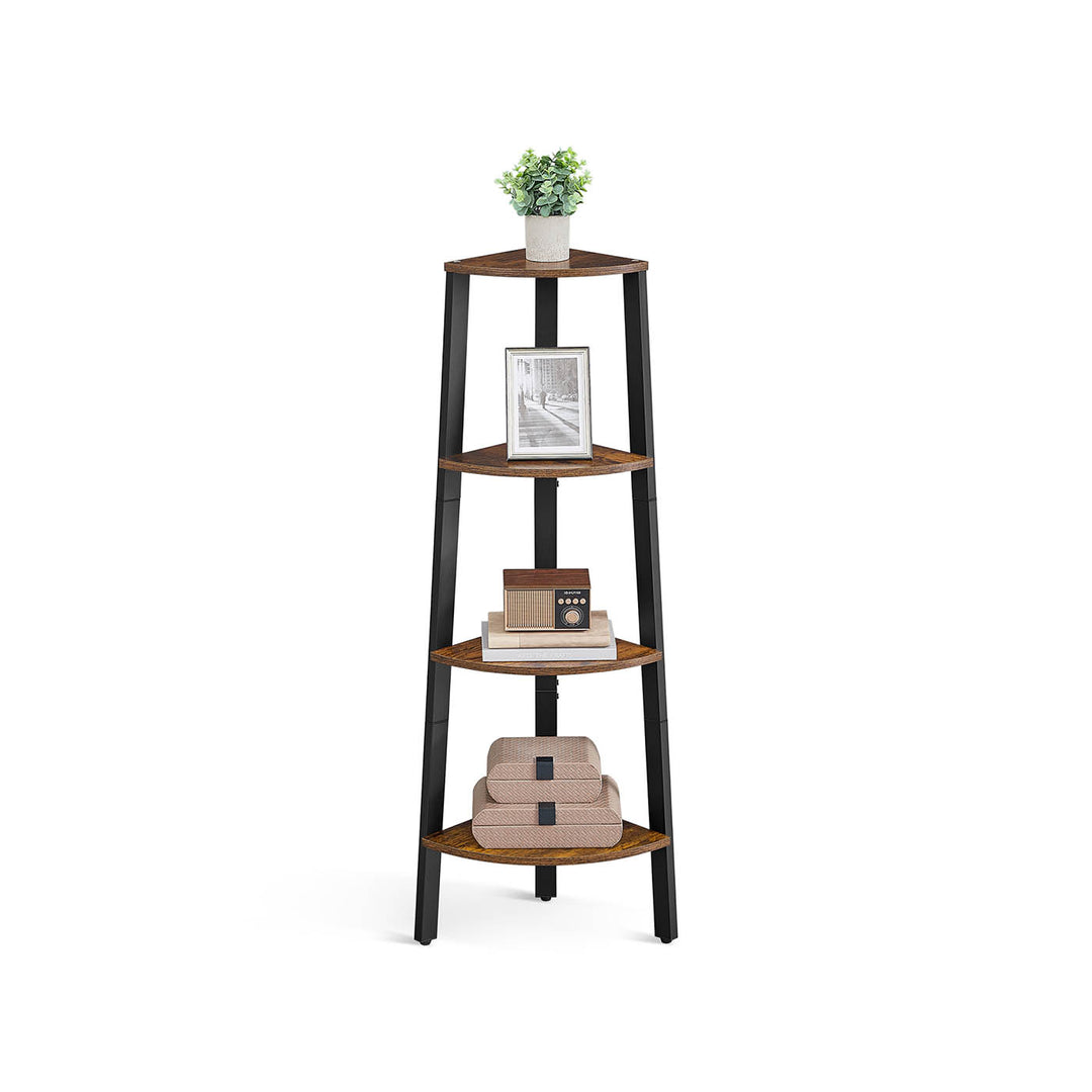 VASAGLE Corner Shelf, 4-Tier Industrial Storage Rack, Ladder Bookcase, Organizer Unit for Home, Living Room, Bedroom, Balcony, Rustic Brown LLS34X