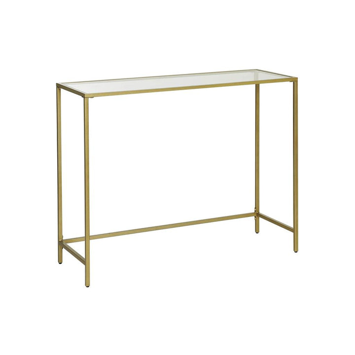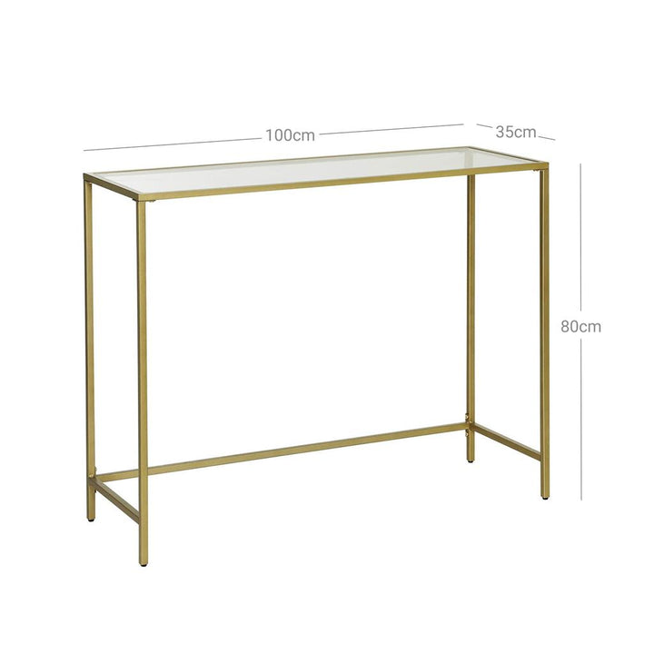VASAGLE Console Table, Tempered Glass Table, Modern Sofa or Entryway Table, Metal Frame, Sturdy, Adjustable Feet, for Living Room, Hallway, Golden LGT26G