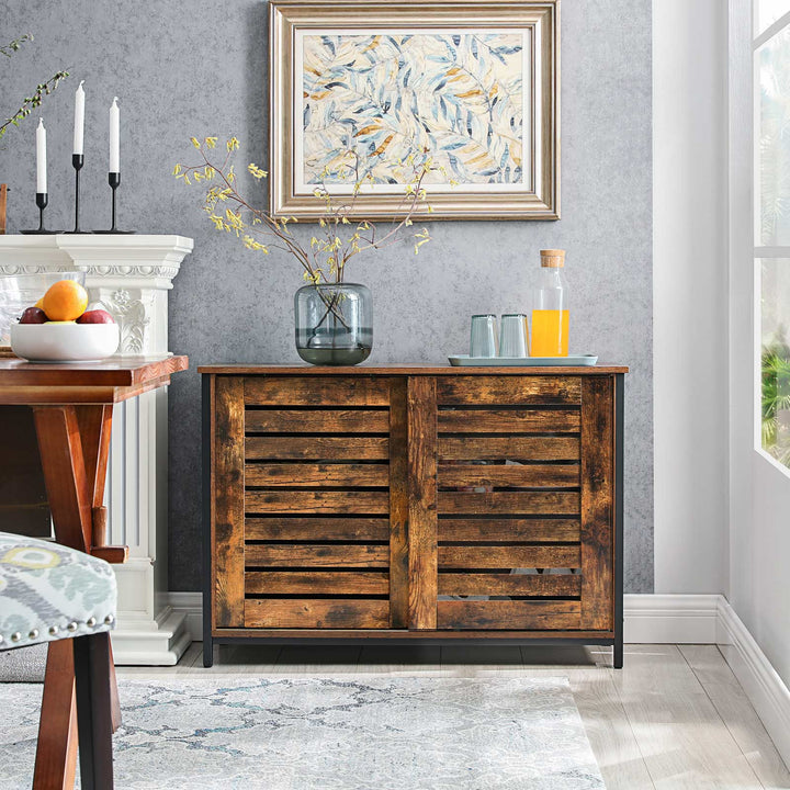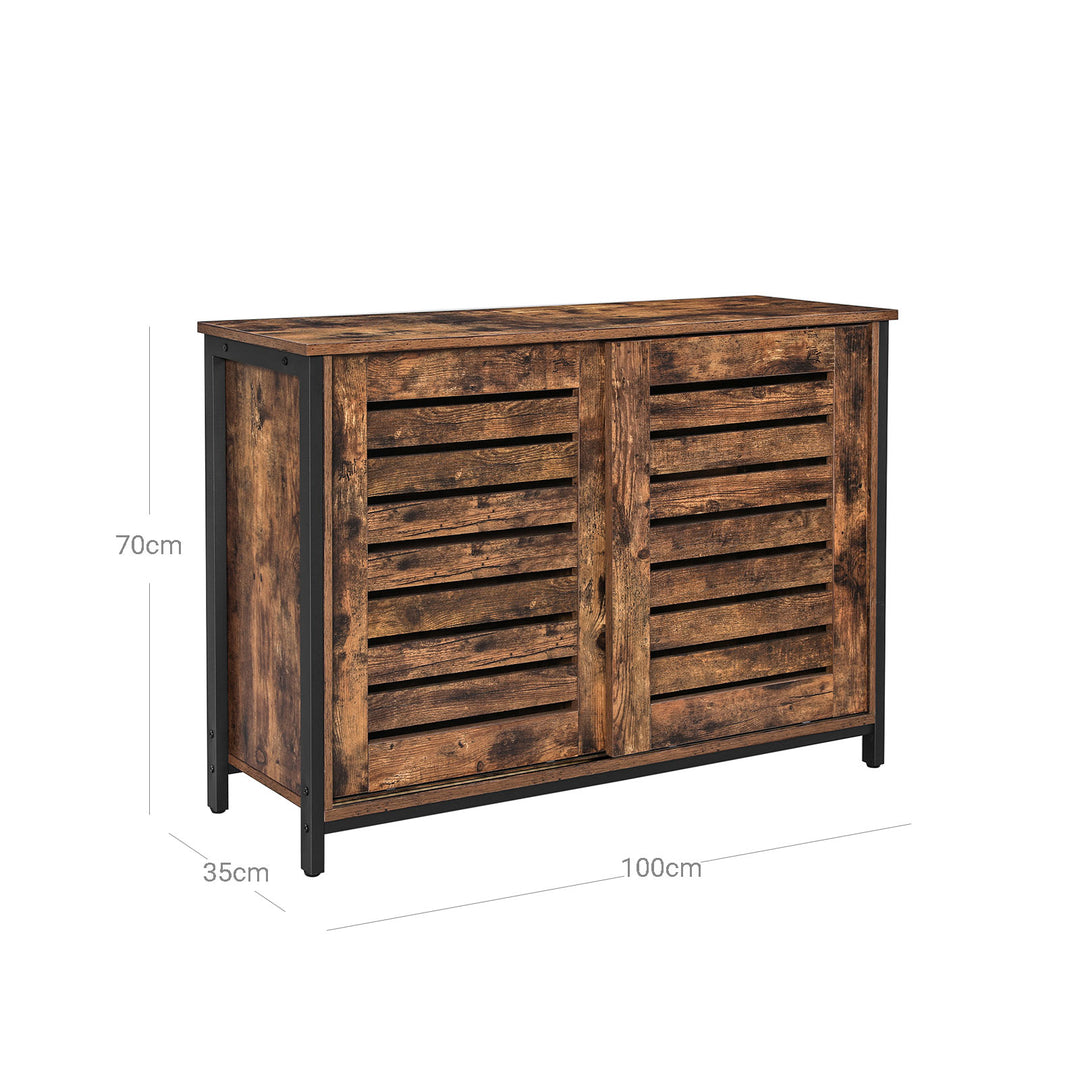 VASAGLE Sideboard, Kitchen Cabinet with Sliding Doors, Chest of Drawers, Living Room, Hall, Kitchen, Home Office, Steel Frame, Industrial Style, Rustic Brown and Black LSC081B01