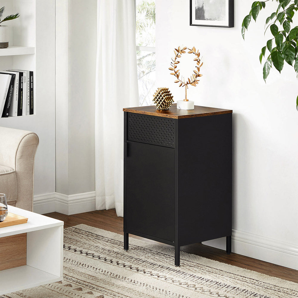 SONGMICS Storage Cabinet, Floor Cabinet with Door, Sideboard with Adjustable Shelf, Steel Frame, Space-Saving, Industrial Style, Rustic Brown and Black LSC101B01