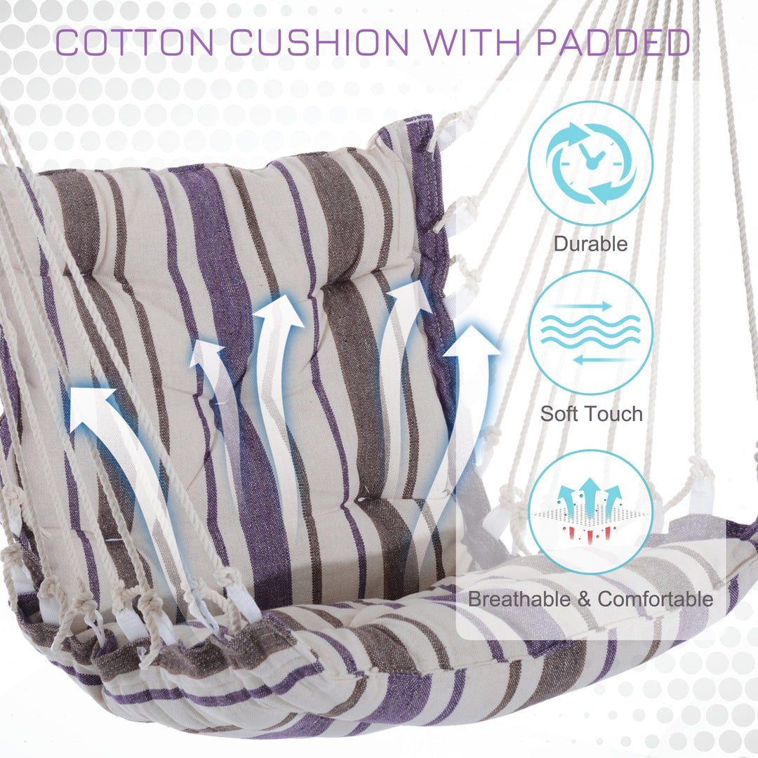 Outsunny Outdoor Hammock Hanging Rope Cushioned Chair Garden Yard Patio Swing Seat Wooden Cotton Cloth (Brown)