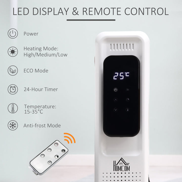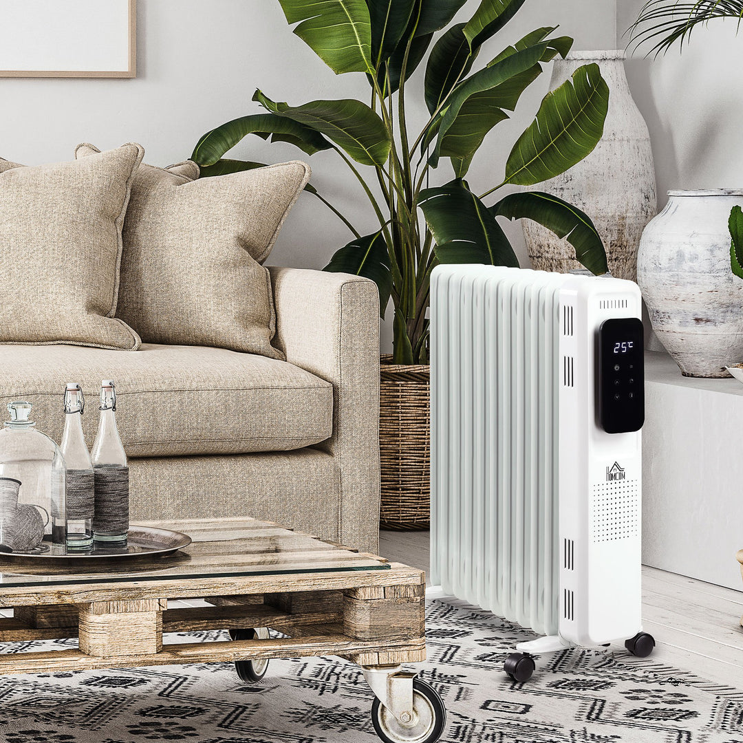 Keep good heated with this electric radiator from HOMCOM. Take control by choosing high, medium or low and adjust the thermostat between 15-35℃, getting your ideal temperature. Save costs on energy bills through the ECO mode. Safe design allows you to enjoy keeping warm with peace of mind - turns off if overheats or falls over. Move with little fuss using the wheels or handle, making sure no room goes cold. The 11 heating fins of oil heater are effective and will warm up your room quickly.