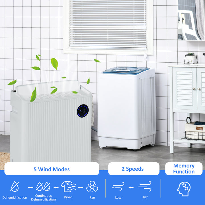 This dehumidifier and air purifier, from HOMCOM, is made to keep air fresh and dry. It removes moisture, protects your walls, furniture, appliances and more from damp. Two speeds and five modes to set to an option which works best for you. The LED screen allows you to control, whilst displaying the humidity and current setting. A safe piece with the light warning and tank cut-off, also with child lock. The HEPA, activated and pre-filter, with air ionising keeps the air clean.