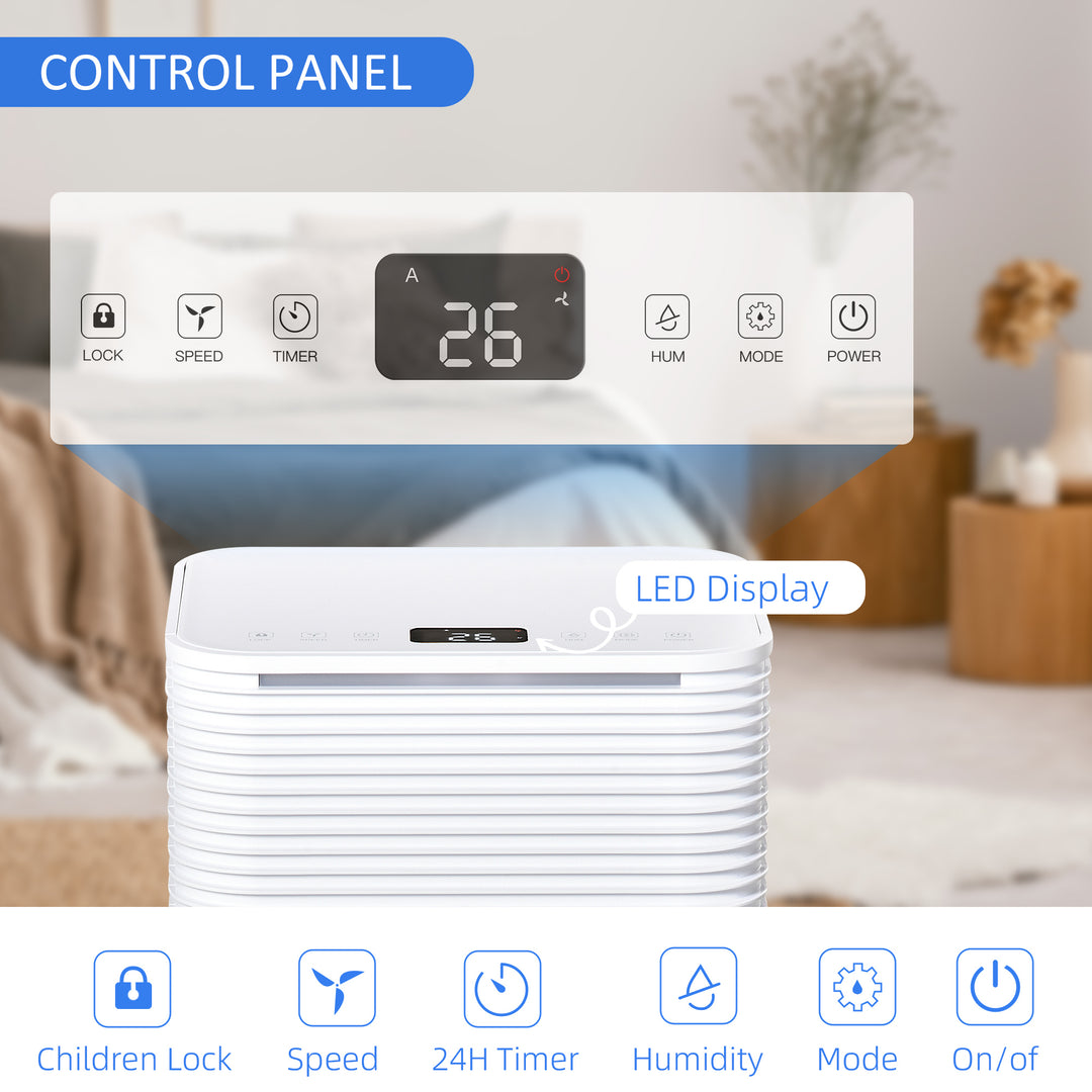 This 2L compact and portable dehumidifier, from HOMCOM, is a must this summer and beyond for keeping your home fresh. It comes a changeable low and high speed, with various modes for different humidity levels. The LED panel makes it easy to view, change and adjust the settings. The 38dB operation is quiet; paired with the compact size - you can stand this cooling machine almost anywhere, anytime.