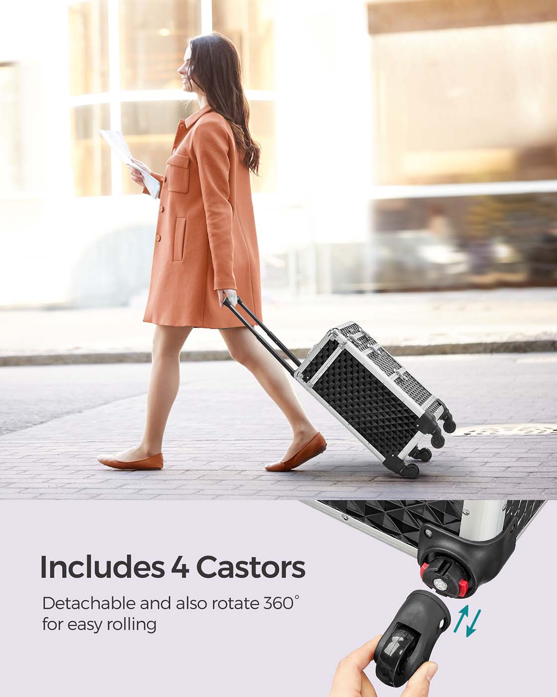 SONGMICS Travel Accessories Rolling Trolley Cosmetic Case ABS Red 34 x 27 x 57 cm JHZ08RD