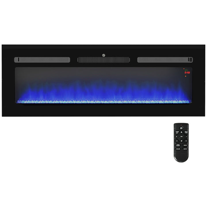 Keep you and your family warm this winter with this HOMCOM wall mounted electric fire. The cryolite-effect rocks plus 9 flame colours creates the ambiance of a real fireplace, and the flame effect can work with or without heat. Control the fireplace from anywhere in the room using the included remote control. Enjoy a charm reminiscent of the wood stoves of the past with this HOMCOM wall fire to add warmth and cosiness to your home.