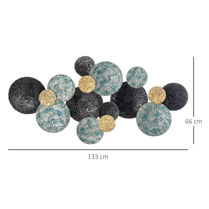 Make it metal on your wall - this large art piece from HOMCOM. The design merges together metallic coloured discs together, all with a textured finish for added depth. The metal formation means it's strong and made to last in your home, with hooks moulded on the back to fix onto the chosen space easily. Comes complete with a hanging kit - you've got everything you need to set up and go in the box.
