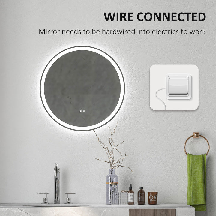 An all-rounder for your home - this kleankin bathroom led mirror. Not only does it come in a stylish round shape, but it's fitted with an outer LED light, with a touch-control, and for bonus points, it has a defog feature: you'll love using this day and night. The light brightness is adjustable - with colours warm white, white and cool white to pick between - you can use this mirror through different times of the day. Wire connected design - must be installed by a trained professional.