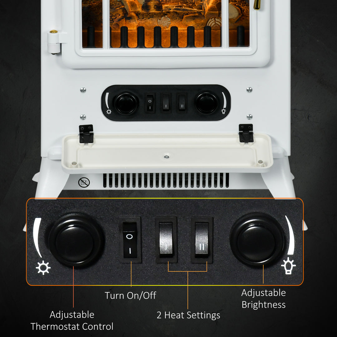 This HOMCOM freestanding fire place is designed with a feel of a real wood burning fireplace. It is made from steel in a compact design with a glass window. The internal temperature of the fireplace can be controlled by the thermostat that ensures it will automatically power off when the product is high temperature. The power can be adjusted at two levels of 950W and 1850W. Our electric wood burner is a great vintage design and would complement any home dŽcor.