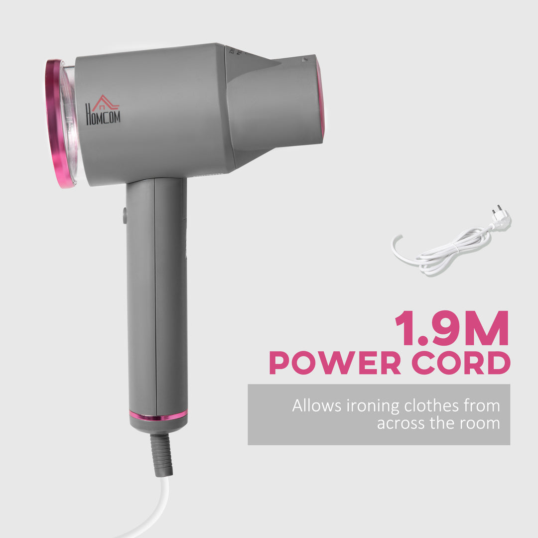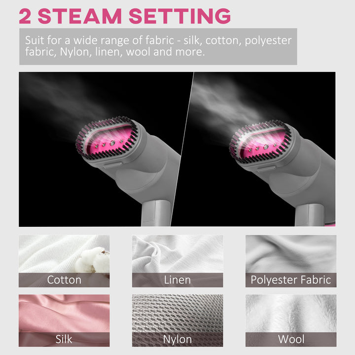 Wrinkle-free clothes, anywhere: this HOMCOM garment steamer for clothes is great for both home and travel use. A 160ml water tank provides between 7-20 minutes of ironing: great for your daily shirts, trousers or other garments. Two steam options and with a fabric brush - it can be used on cottons, linens, polyesters and even (some) silks. Foldable and lightweight, this steamer clothing is a great travel companion for wherever the road takes you.