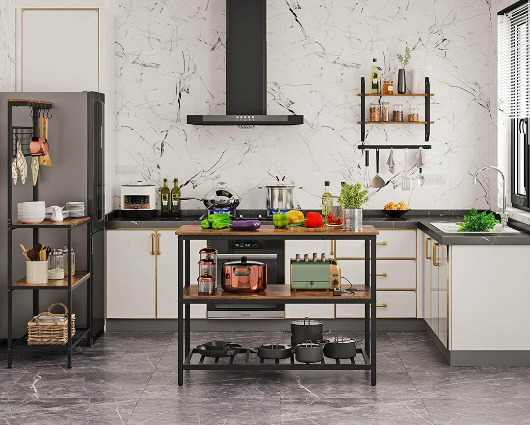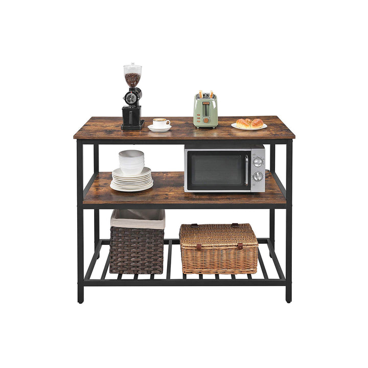 VASAGLE Baker's Rack, Kitchen Island with Large Worktop, Stable Steel Structure, 120 x 60 x 90 cm, Industrial Kitchen Shelf, Easy to Assemble, Rustic Brown and Black KKI01BX