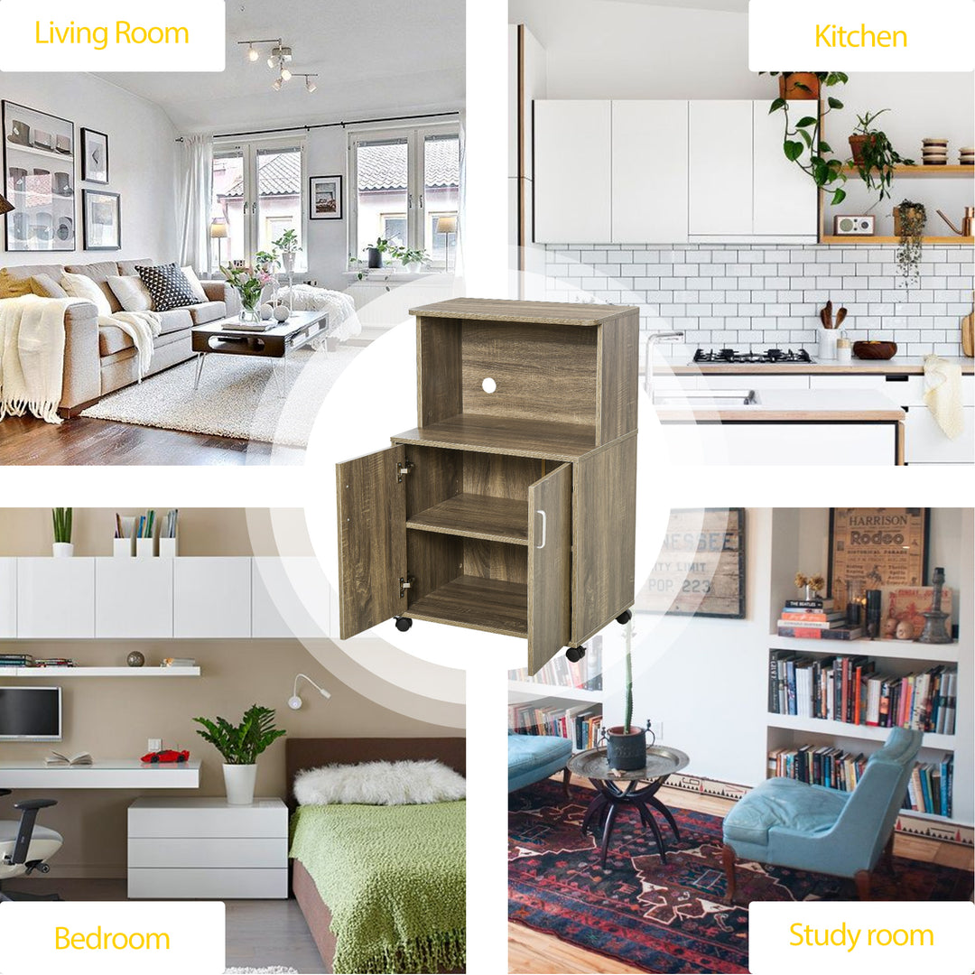 Microwave Stand, Modern Kitchen Storage Unit, Trolley Cart Sideboard w/ Cabinet, Locking Wheels, Shelf for Living Room, Dining Room -Oak Tone