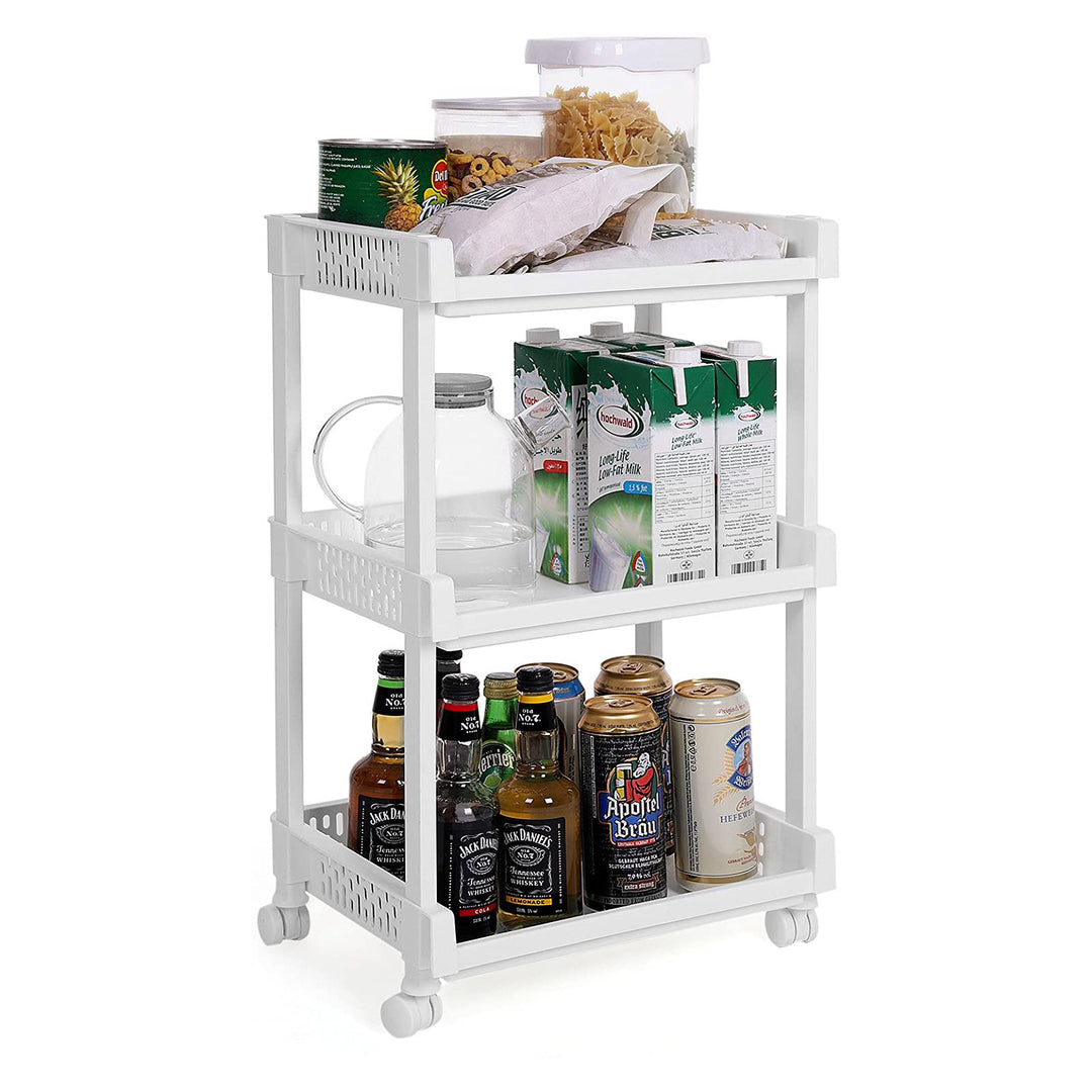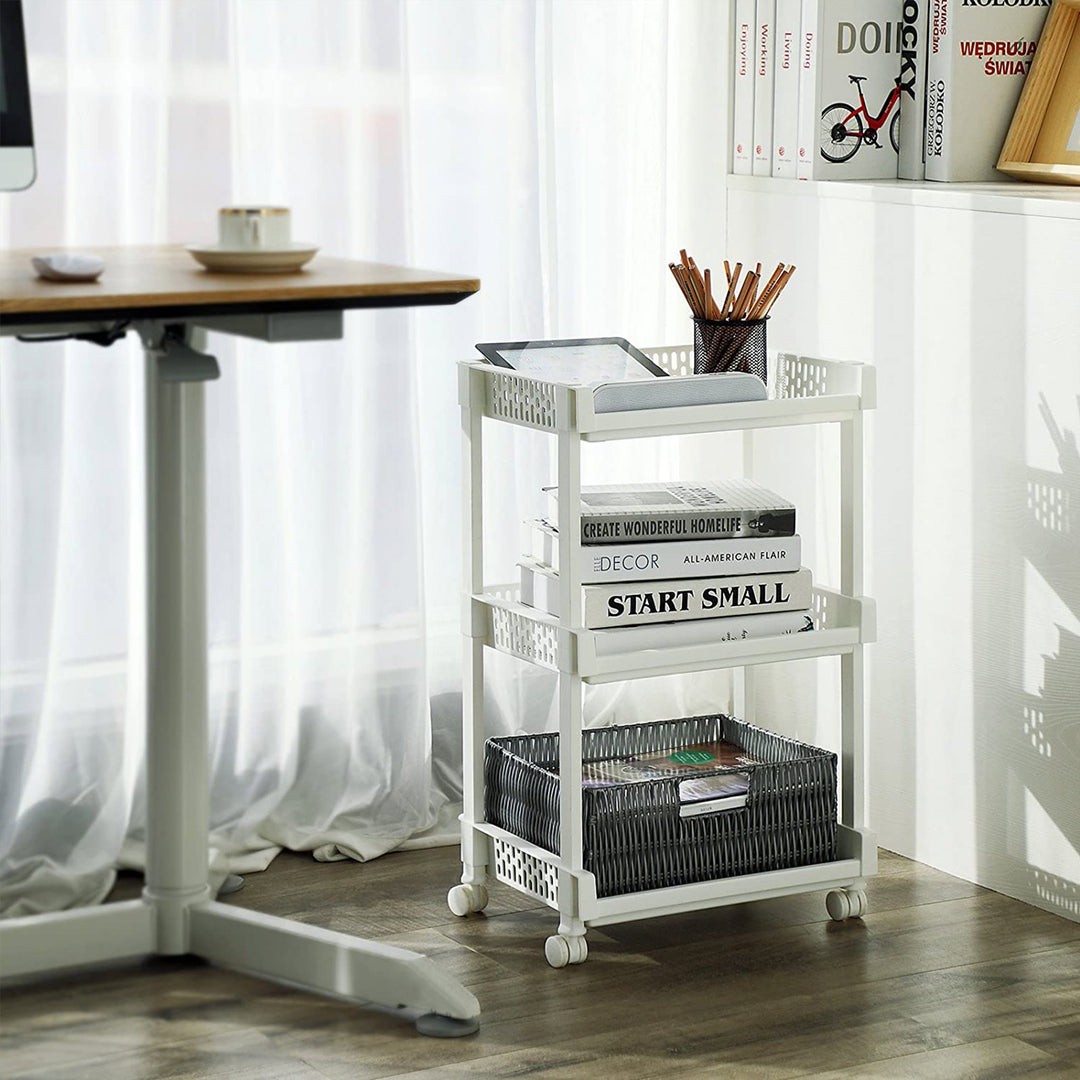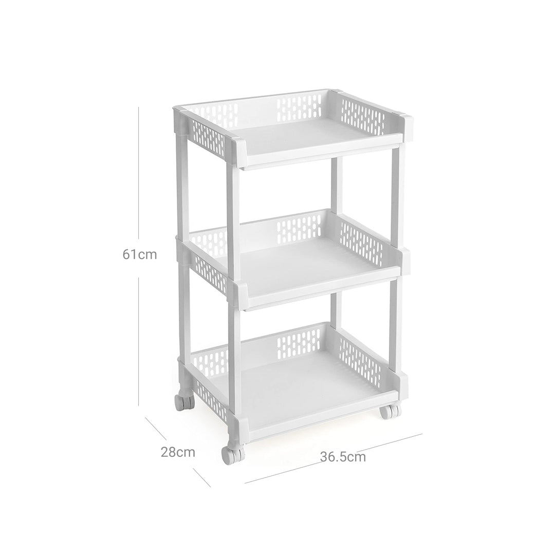 SONGMICS Rolling Trolley Storage Unit with 3 Shelves for Kitchen Bathroom Cellar KSC03WT