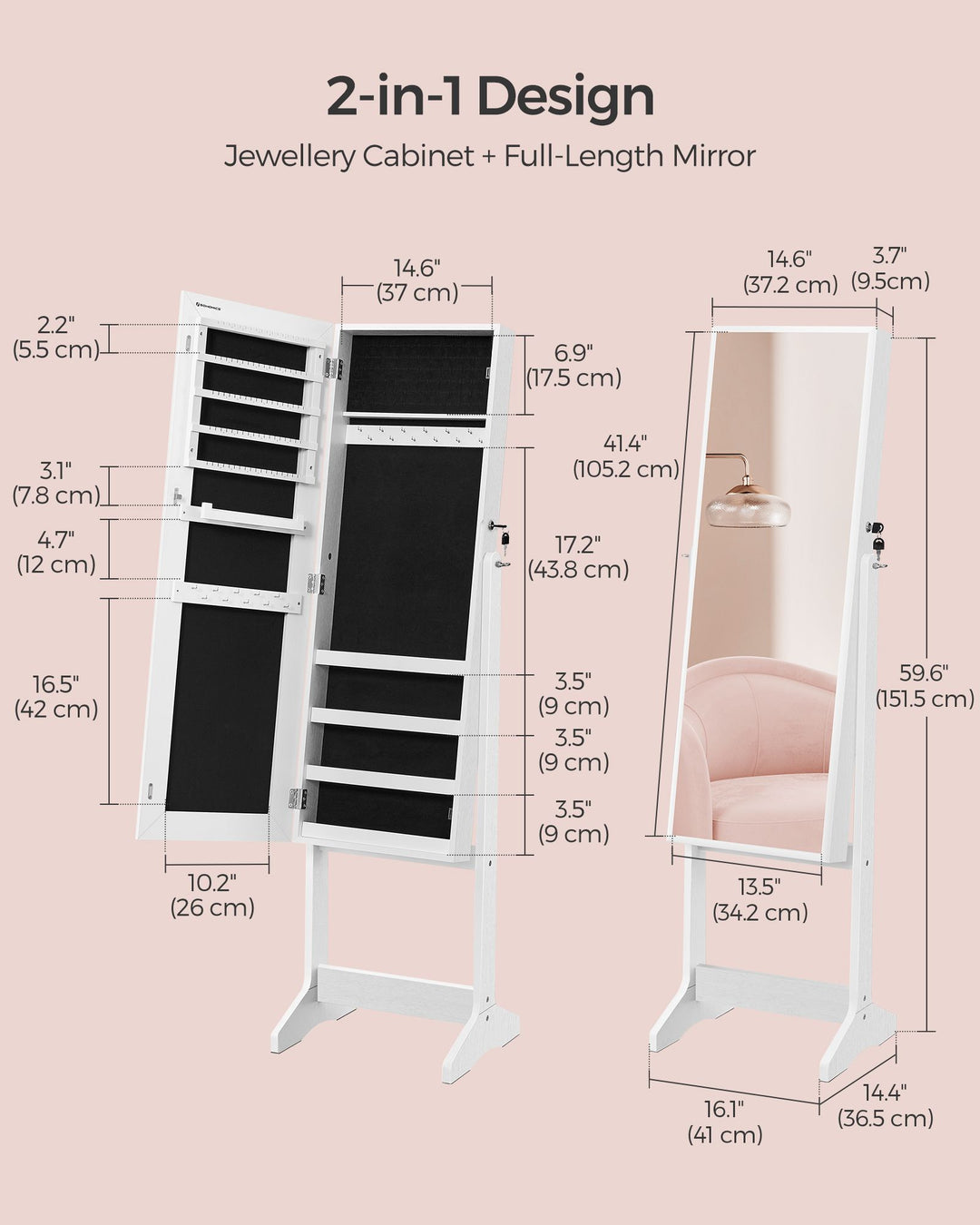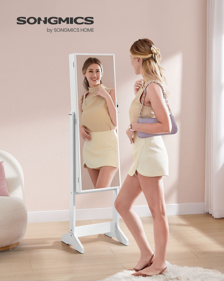 SONGMICS Jewellery Cabinet, Mirror Armoire, Standing Mirror, Full Length Mirror, Gift Idea, Simple Assembly, Brown JJC69BR