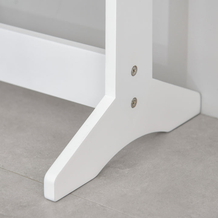 This floor standing jewellery cabinet from HOMCOM is perfect for keeping all your make-up, jewellery and other accessories together in a place. On the outside is a full-length mirror with battery powered LED lights that create a soft and flattering glow, and on the inside is a fully-lined interior that can house up to 32 pairs of earrings, 70 rings, 12 hooks and three shelves. Made from sturdy MDF board, the mirror can be adjusted to three different levels to suit your preferences. Clean, stylish and contemporary, this organiser is a beautiful addition to any style surrounding.