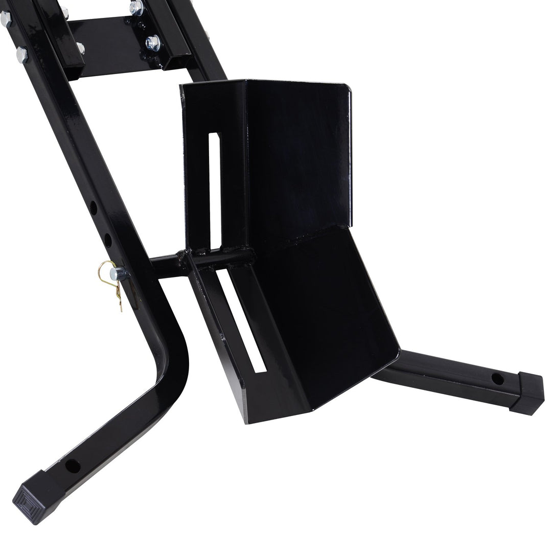 Let your motorbike stand proud and steady with this wheel chock from HOMCOM. Formed from metal with a powder coating for extra strength and protection, it features pre-drilled holes for you to fix to the floor or wherever you need it to be placed. It can be adjusted to three levels and is suitable for tyres between 17" and 21". It's finished with rubber caps on the ends to prevent the frame damaging your floor.