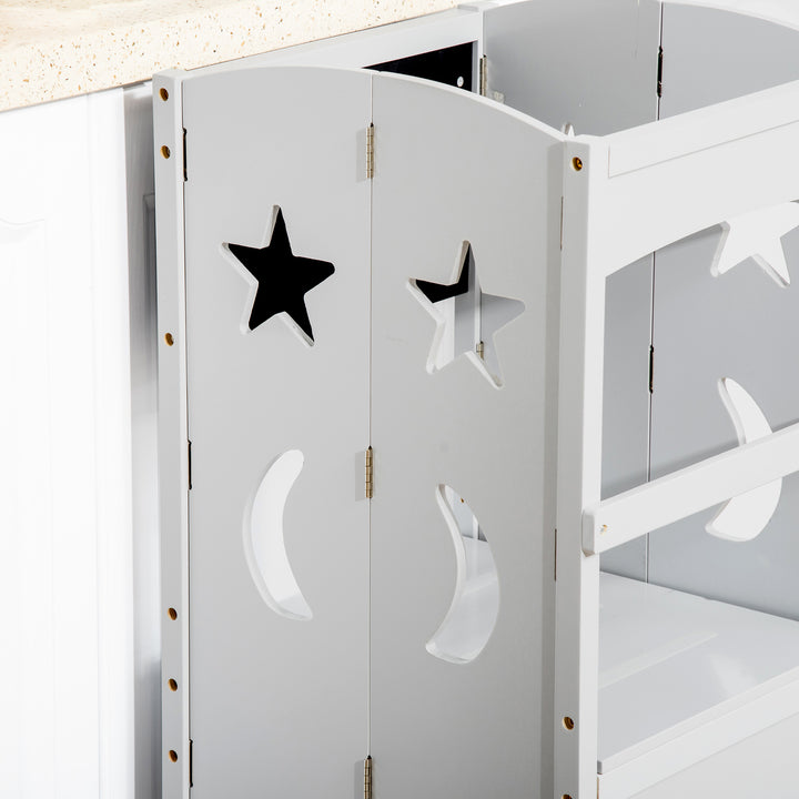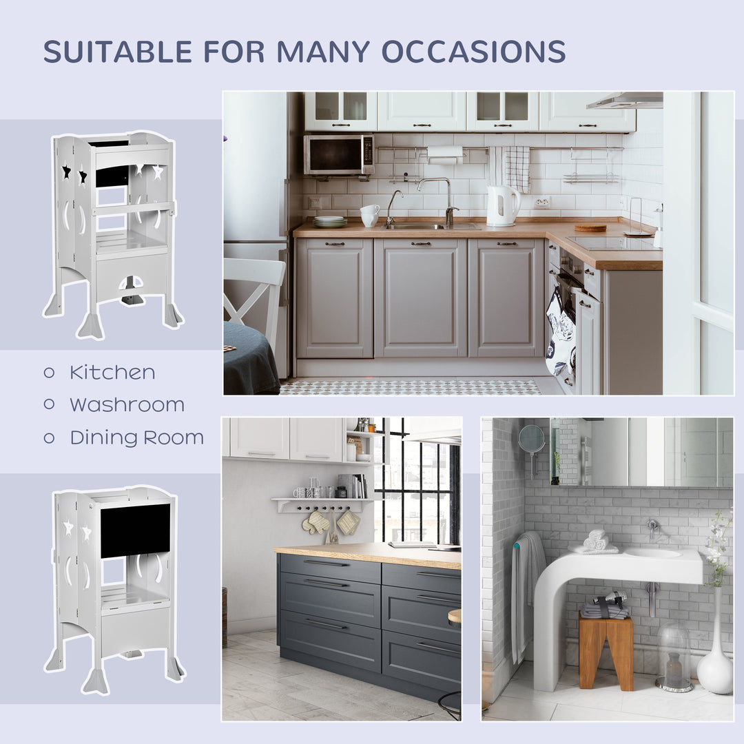 Make it easier for your child to reach the sink, brush their teeth, wash their hands and use the counter with this step stool from HOMCOM. They'll stay safe when using, thanks to the guardrail and handrail adding support. Getting mess on the stool isn't a problem - simply wipe the mess away; with the MDF structure meaning it's durable and fully supportive. As your child grows and learns, this stool will help with teaching them independence and basic life skills. For ages 3-6 years.