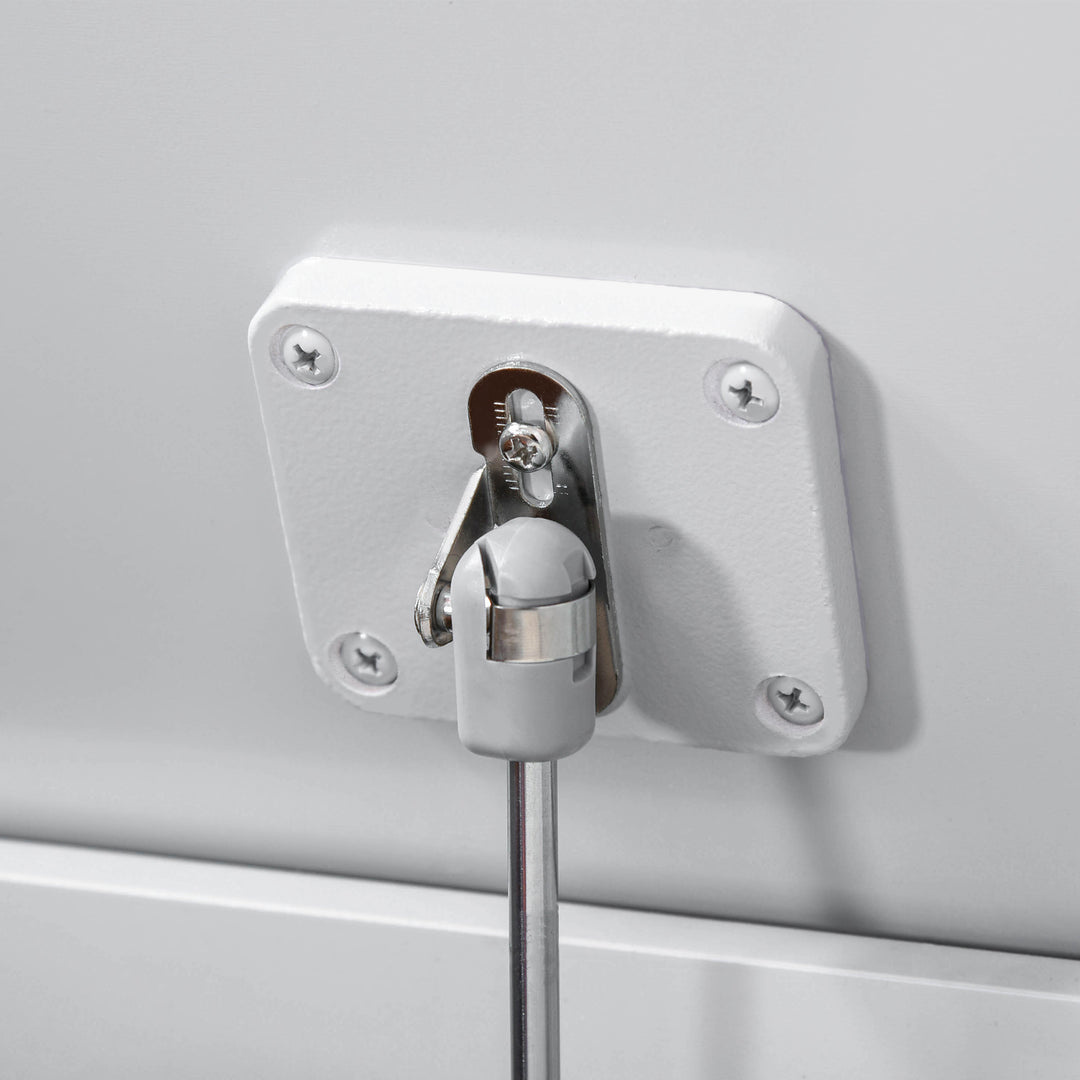 - Safety pneumatic rod holds lid securely in place, prevents lid falling on fingers