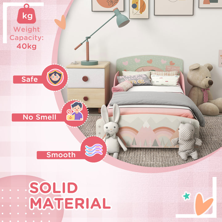 Transform your child's bedroom with this ZONEKIZ kids bed & storage shelf. Boasting a playful animal design, it's a vibrant and uplifting addition to their bedroom. Safety is a priority, all materials are certified, ensuring kids are safe and supported when playing and sleeping. Crafted from durable MDF, it offers strength and safety for active toddlers. The ideal for bedroom set for kids, making the transition smooth and enjoyable.