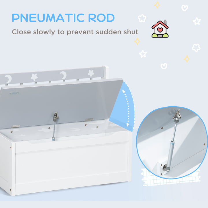 Tired of your kids throwing their toys across the room every time they play with them? This toy storage offers ample storage space. The toy chest with lid opens and closes slowly with a safety pneumatic rod to prevent the lid from slamming suddenly. The toy chest is also great for encouraging your kids to keep their spaces neat and organized. It's also a chair for your kids to rest due to the thoughtful design. Check out this kids storage chest, and don't hesitate to buy it!