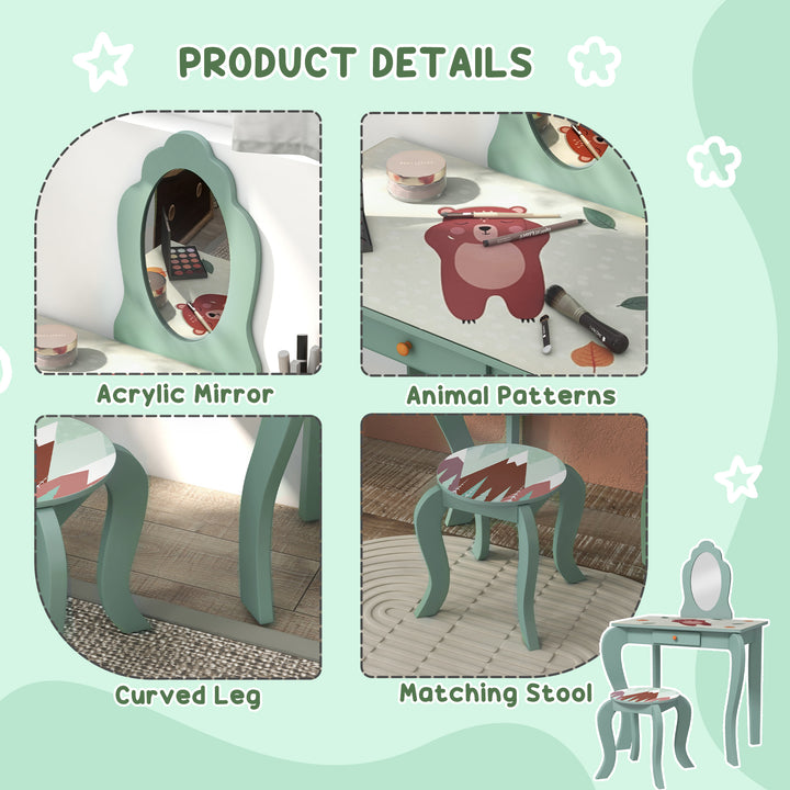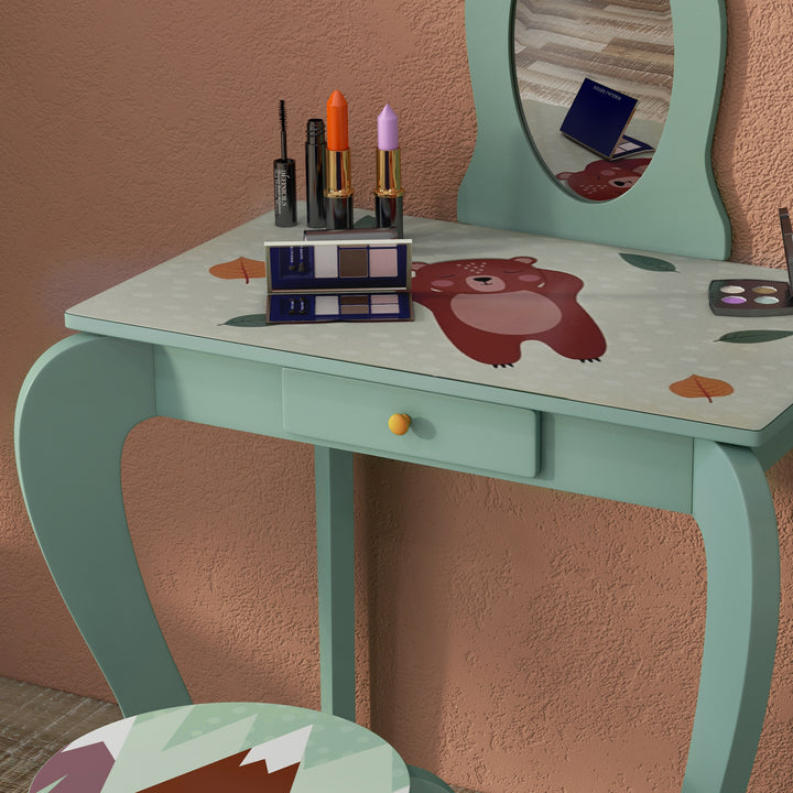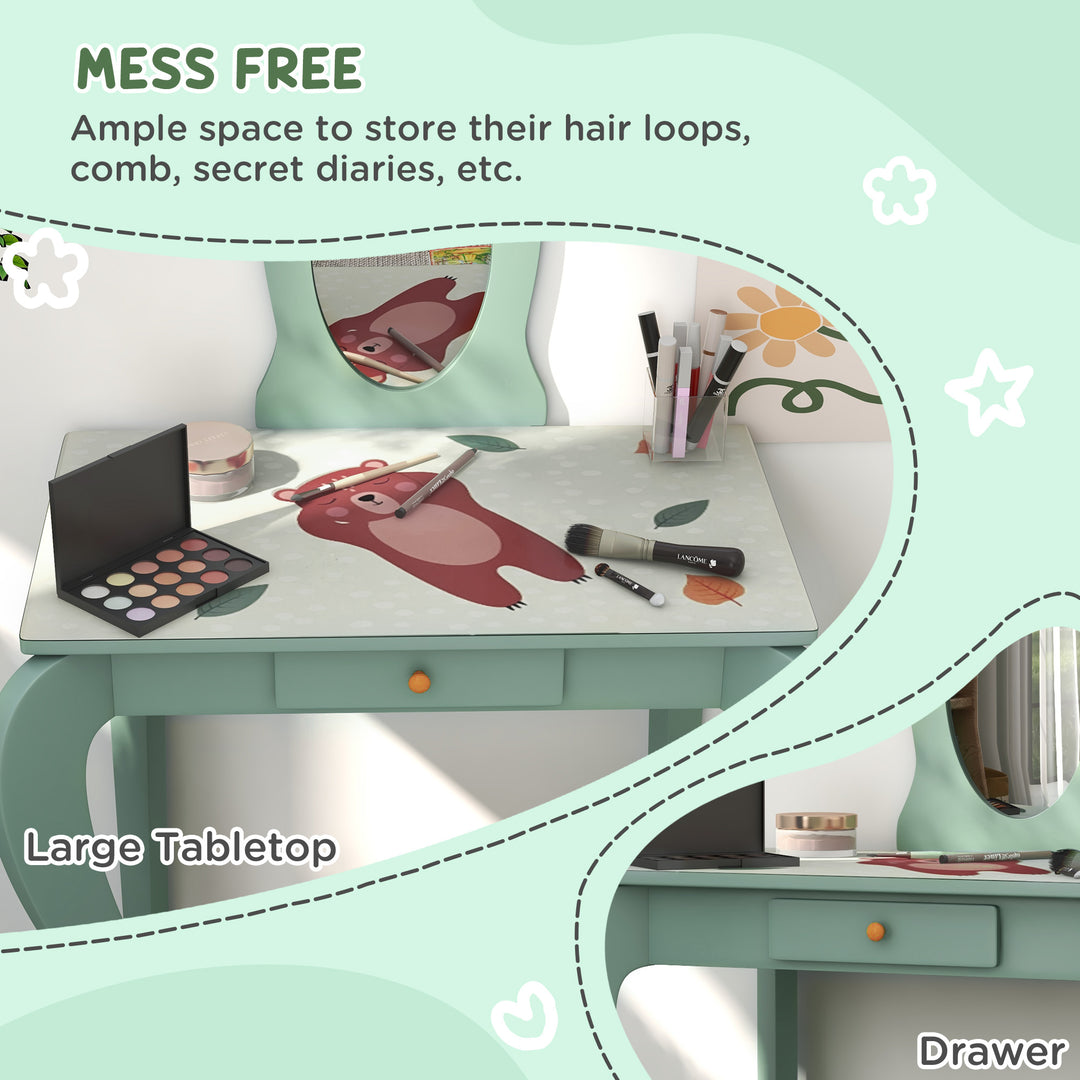 Uplift your child's room with our adorable ZONEKIZ vanity table. Cute and vibrant, its animal design sets the tone nicely for any room. Their own little haven, they'll use the mirror to get ready in the mornings, practise their makeup, do their hair and more. When finished, loose accessories go in the drawer or are kept neatly on the tabletop. With certified materials, it provides hours of imaginative, worry-free play. Watch their creativity blossom, thanks to this fantastic dressing table set.