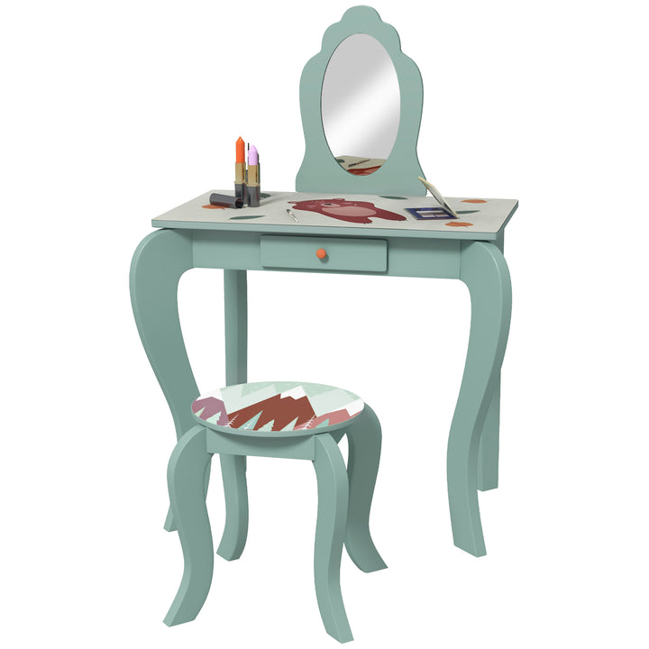 - A kids dressing table set, which includes a vanity table, matching stool and a mirror