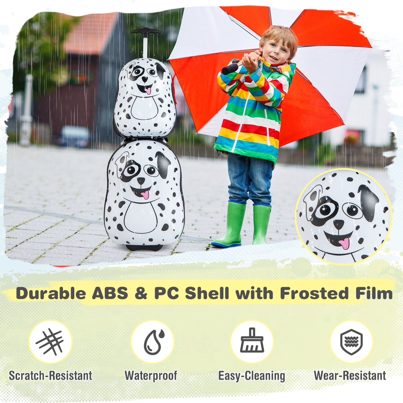 The 2-piece kid luggage set includes a carry-on hardshell suitcase and backpack bag, providing a large capacity to keep your items well organized. Moreover, The hardshell suitcase features inside cross straps and a zippered storage pocket for classifying items, and the backpack also comes with an elastic pocket to store items in the order. And it is airline approved to carry on. The luggage set is made of premium ABS and PC material with frosted film, which is waterproof for outdoor use while effectively preventing scratches. Besides, the height-adjustable telescoping handle and adjustable shoulder straps meet the needs of kids of different heights and sizes. Thanks to the four 360° swiveling universal casters/2 large rotating wheels, the carry-on luggage is easy to move around whether schooling or traveling. If you are looking for such 2-piece kid luggage set, don't hesitate to place an order! 2 PCS Kids Luggage Set: The kid luggage set includes a carry-on hardshell suitcase and a backpack bag, which are perfect sizes to be put in the overhead compartment or under the seat of the airplane. Moreover, the luggage set only weighs 2.5 kg/2 kg, which is lightweight enough for kids to pull or push around. Safe and Durable Material: The hardshell luggage set is crafted with durable ABS and PC shell with frosted film, which is scratch-resistant, wear-resistant, waterproof, and easy-cleaning, ensuring a long-term use. Besides, the telescoping handle is made of solid and lightweight aluminum. Ergonomic Design: The height of the locking telescoping handle can be adjusted according to the kid's height, and the shoulder strap on the backpack bag can also be adjusted to suit the kid's body. Moreover, the wide shoulder straps can effectively reduce the pressure on the kid's shoulder. Large Capacity and Classified Storage: There exist several compartments in the suitcase and backpack, providing ample space to store kids' toys, clothes, snacks, books, toiletries, and more while keeping them well organized. Furthermore, thanks to the cute patterns, this luggage set can be a perfect gift for your boys and girls. Easy Movement and Wide Application: The carry-on suitcase is equipped with four 360° swiveling universal casters/2 large rotating wheels, which are effortless and flexible for kids to move around. And it is suitable for various outdoor activities, such as trains, airplanes, picnics, schools, sleepovers, etc.