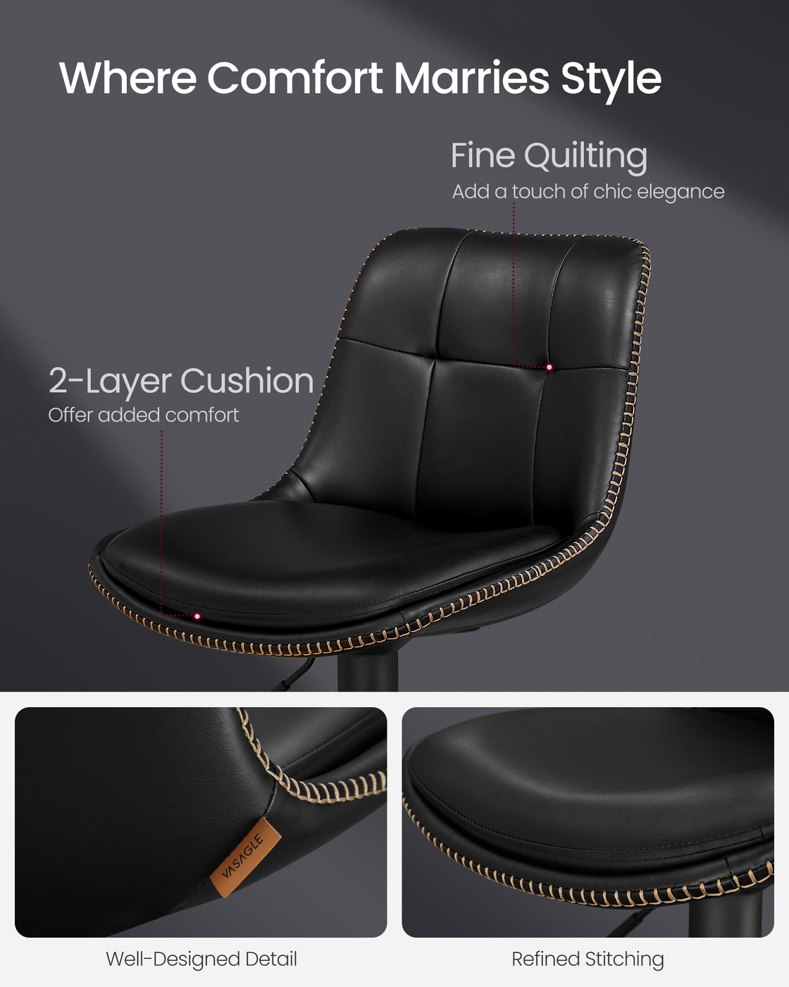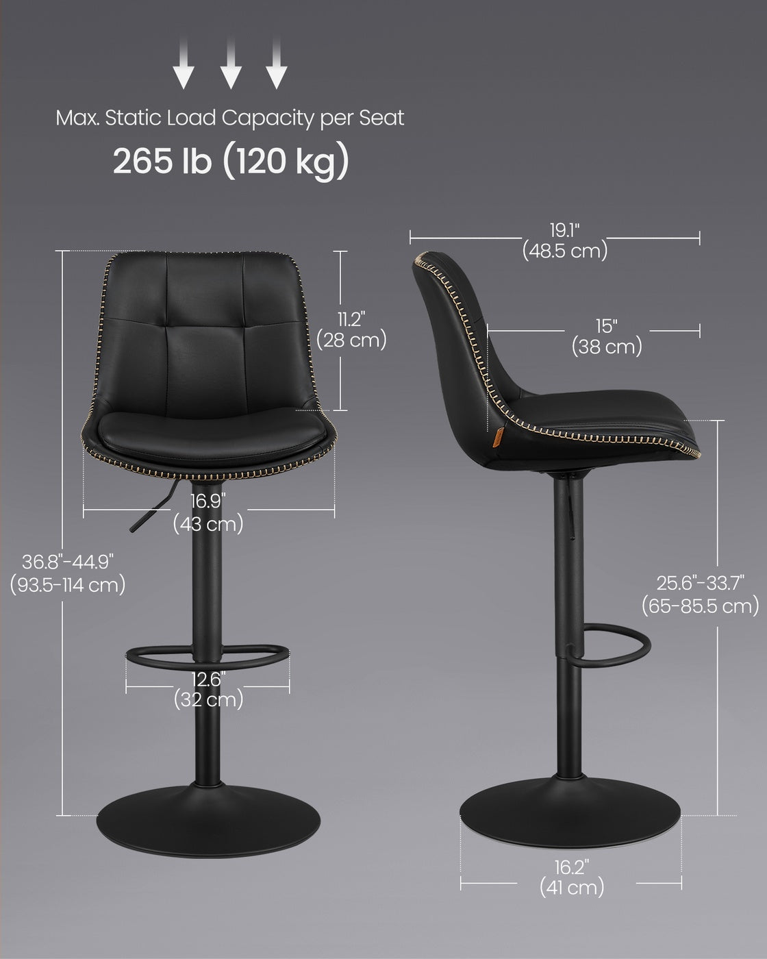 VASAGLE Bar Stools Set of 2, Height Adjustable Swivel Kitchen Stools, Quilt, Synthetic Leather Bar Chairs with Back and Footrest, Dining Room, Counter, Steel