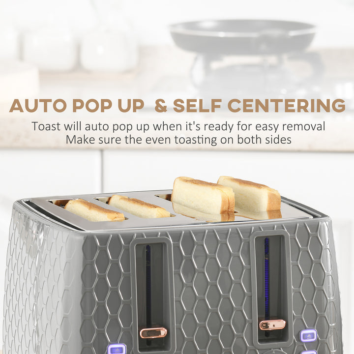 Expand your options with the HOMCOM kettle and toaster set that goes beyond just a matching pair. Start your day off right with a hot beverage from our versatile electric kettle. Whether it's a quick cup of coffee, a soothing cup of tea, or a warm mug of water with lemon, kettles are an essential part of everyone's morning routine. If you prefer to kickstart your mornings with delicious slices of toast, our 4 slice toaster is the perfect choice. It's a great addition to any home kitchen.