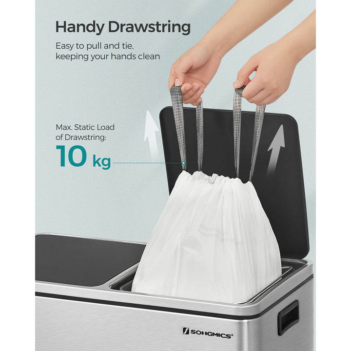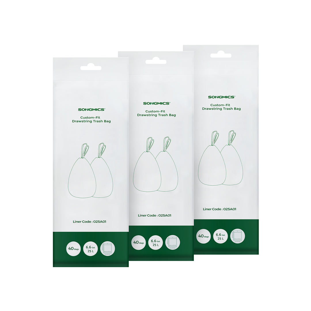 SONGMICS Bin Liners, Bin Bags, Drawstring Rubbish Bags for 25L Kitchen Bins, Liner Code 025A, 1 Roll, 40 Pieces, White KRB025A01
