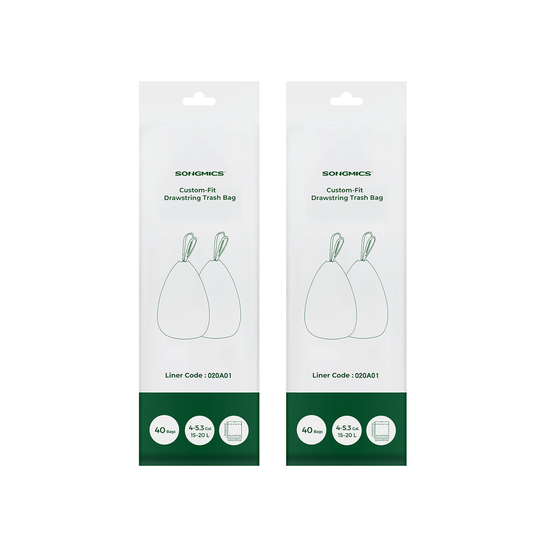 SONGMICS Bin Liners, Bin Bags, Drawstring Rubbish Bags for 15-20L Kitchen Bins, Liner Code 020A, 1 Roll, 40 Pieces, White KRB020A01