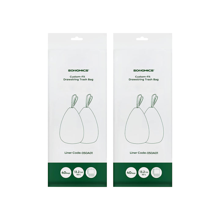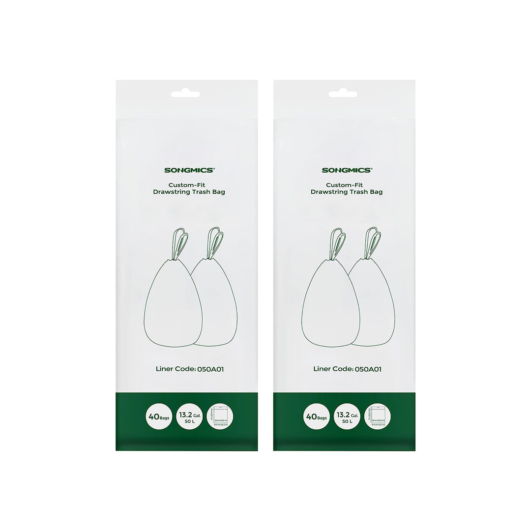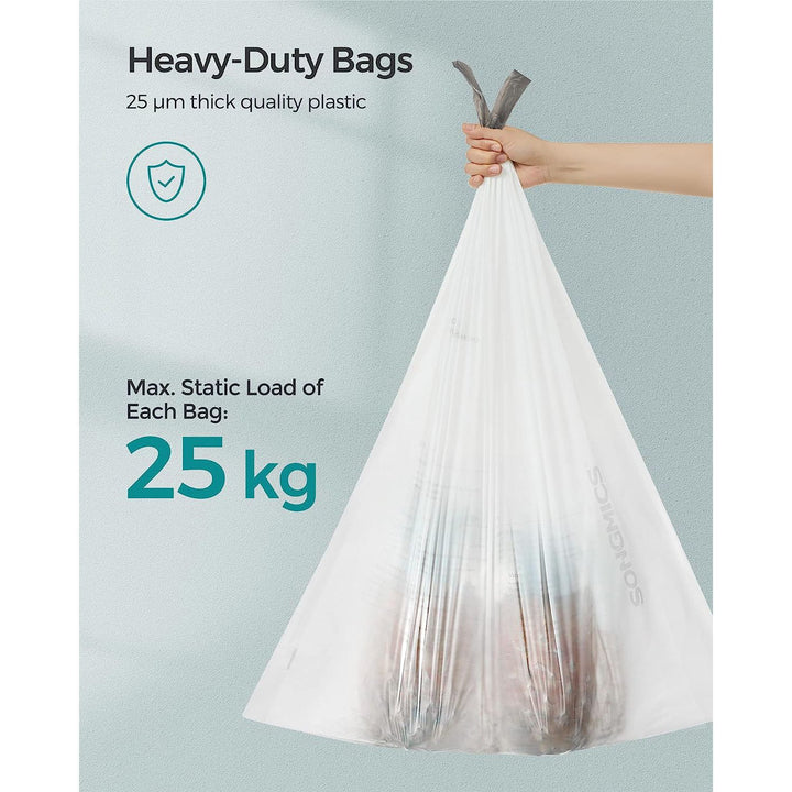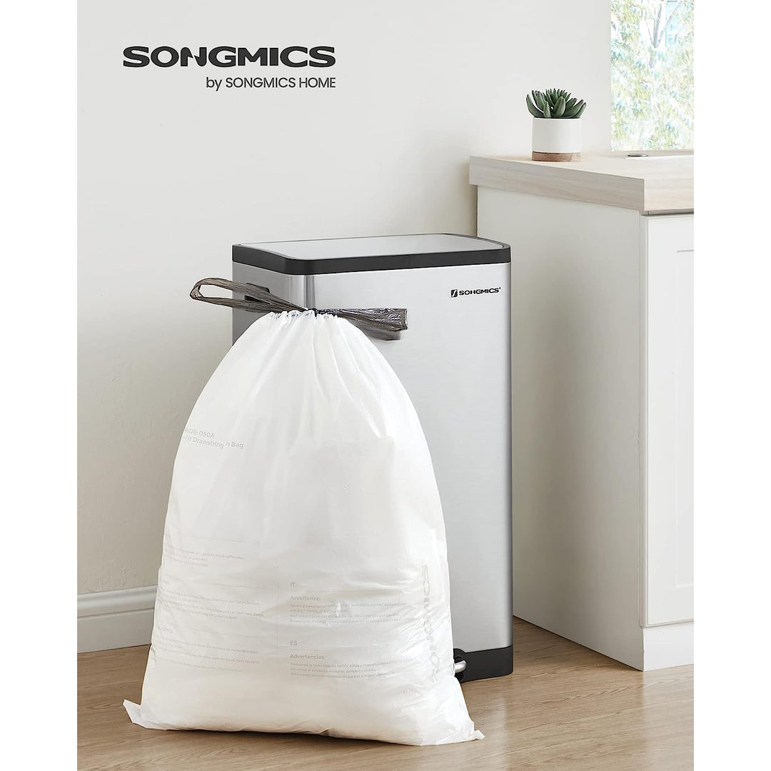 SONGMICS Bin Liners, Bin Bags, Drawstring Rubbish Bags for 50L Kitchen Bins, Liner Code 050A, 2 Rolls, 80 Pieces, White KRB050A02
