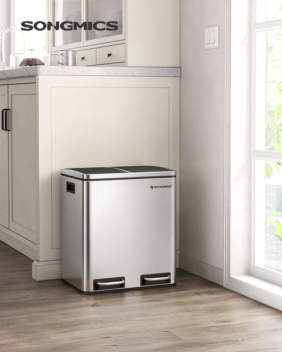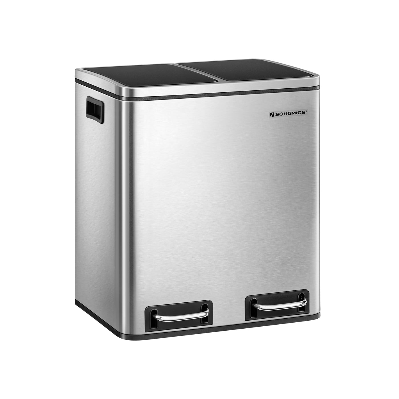 SONGMICS 30 L Recycle Bin Trash Can with Inner Classified Bins 2 x 15 Liter for Kitchen Stainless Steel LTB30H