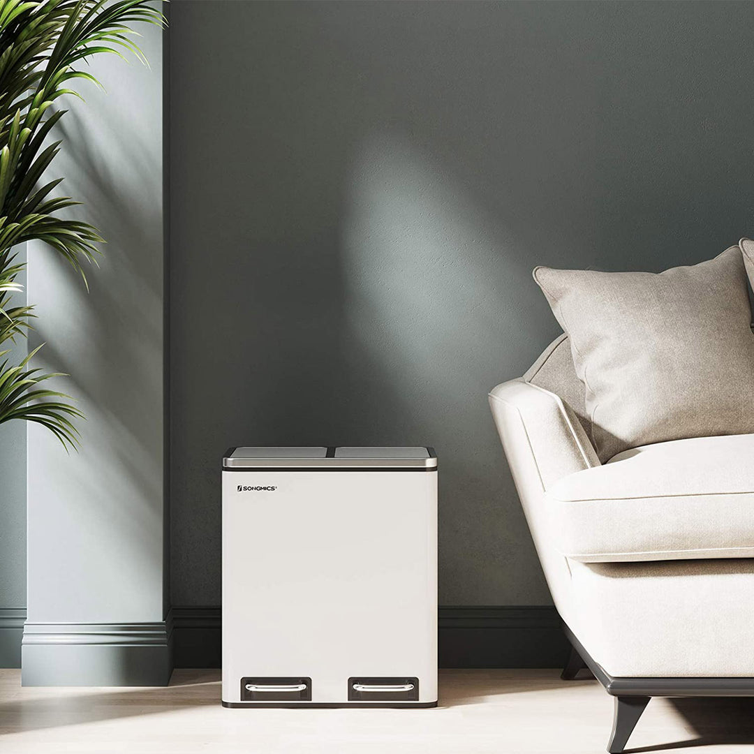 SONGMICS 30 L Recycle Bin Trash Can with Inner Classified Bins 2 x 15 Liter for Kitchen Stainless Steel LTB30H