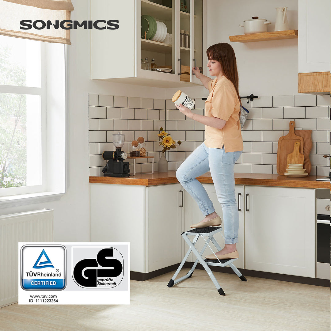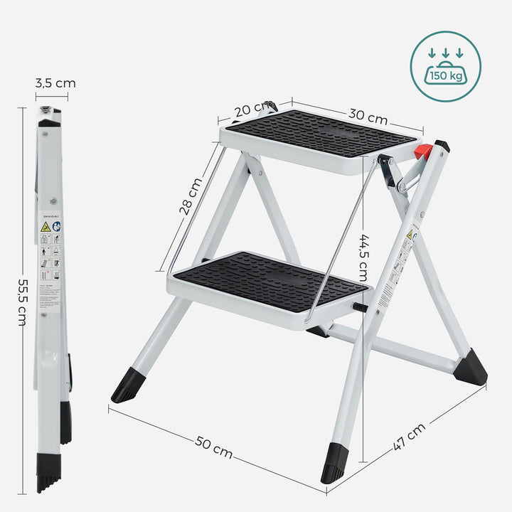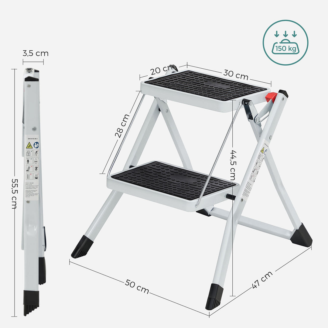 SONGMICS 2 Step Ladder, Heavy Duty Steel, Folding, Portable with Anti-Slip Mat Max. Load Capacity up to 150 kg Tested