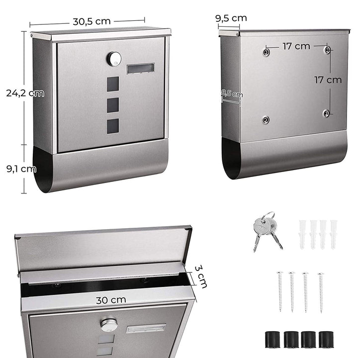 • WHAT YOU GET: A mailbox for optimal protection for your letters and mail, with quality lock and keys, installation hardware, and a silver tone that adds modern appeal to your front door