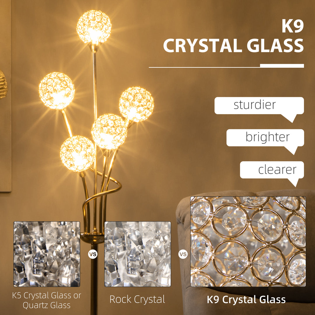 This HOMCOM lamp brings that added sparkle into your home - which you didn't realise you needed. The thin and sleek metal frame is fitted with five ball shades; they're formed of an abundance of crystallite beads - as the light shines through it'll create a glistening atmosphere. Comes with a foot pedal so you can turn this lamp on and off easily. Brighten up your home and living space, instantly.