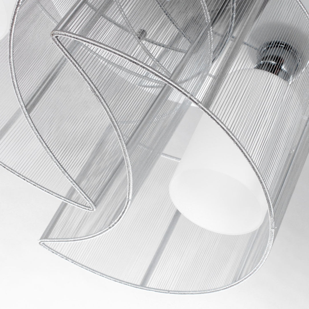 - Made up of 2 crescent fence style wire drawing shade and 2 glass lightshades (bulbs not included)