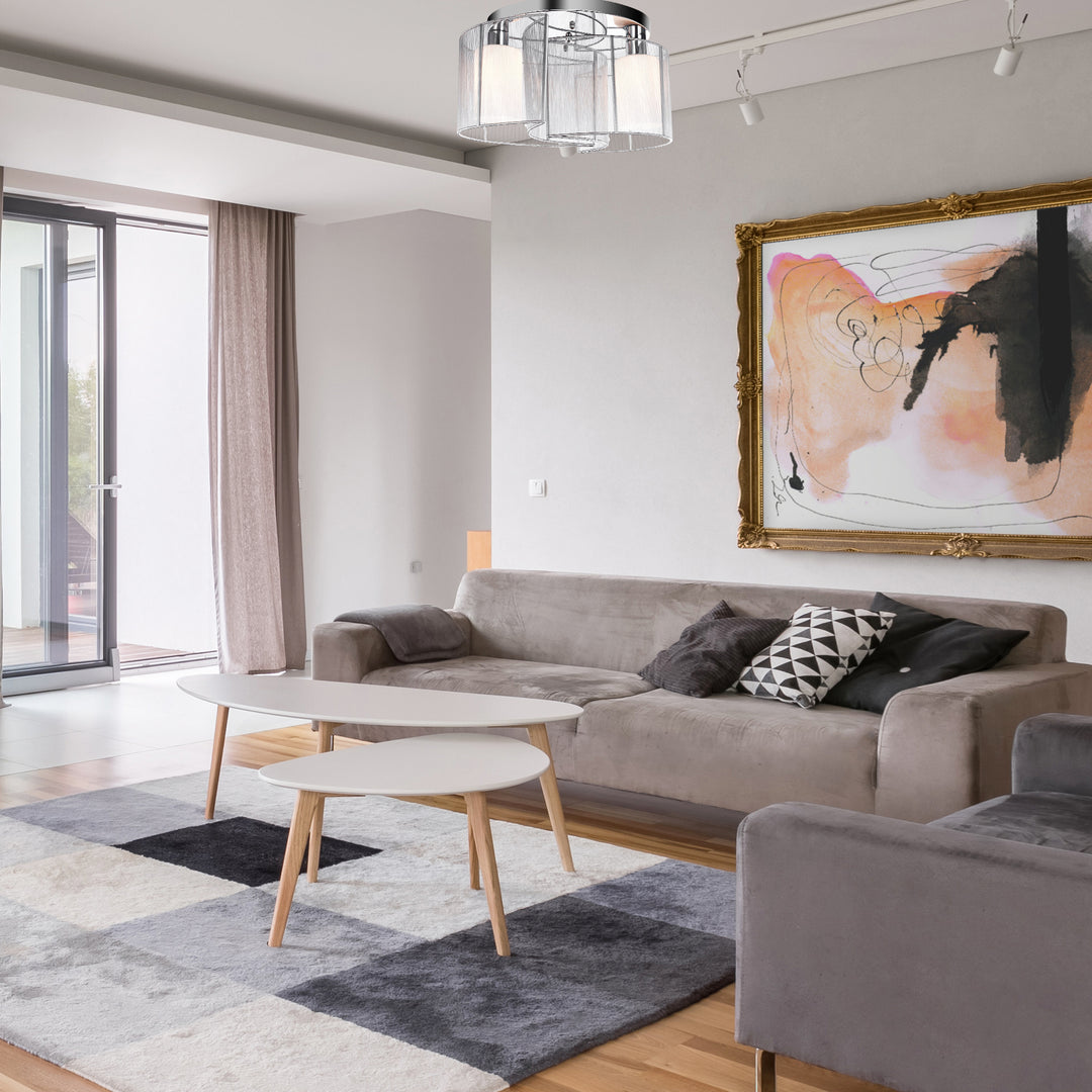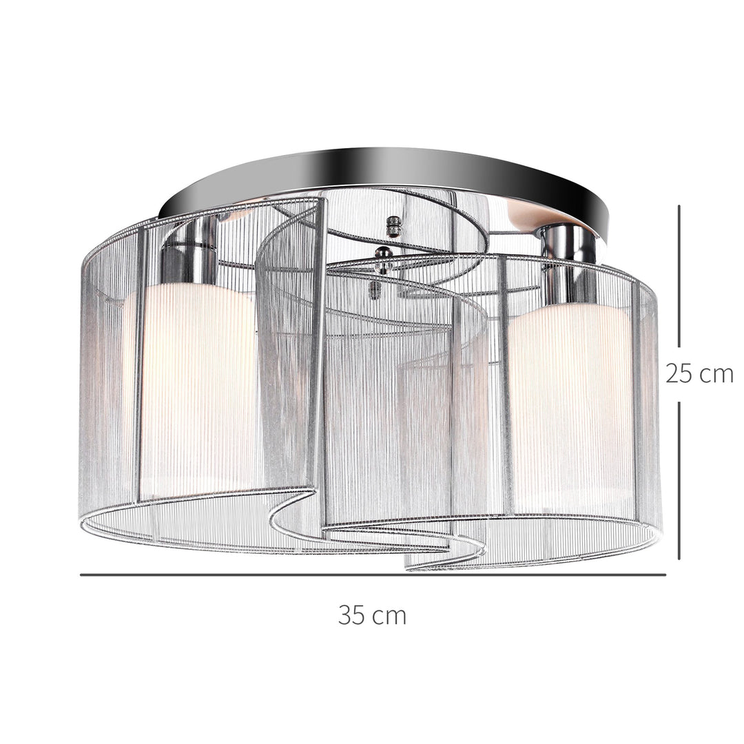 This HOMCOM ceiling chandelier is a great addition to any home, it features a double crescent shade design fabric. The light has a metal chrome finish with the hanging design creating a glow with a dazzling effect. This light will add an elegant and romantic atmosphere to any home.
