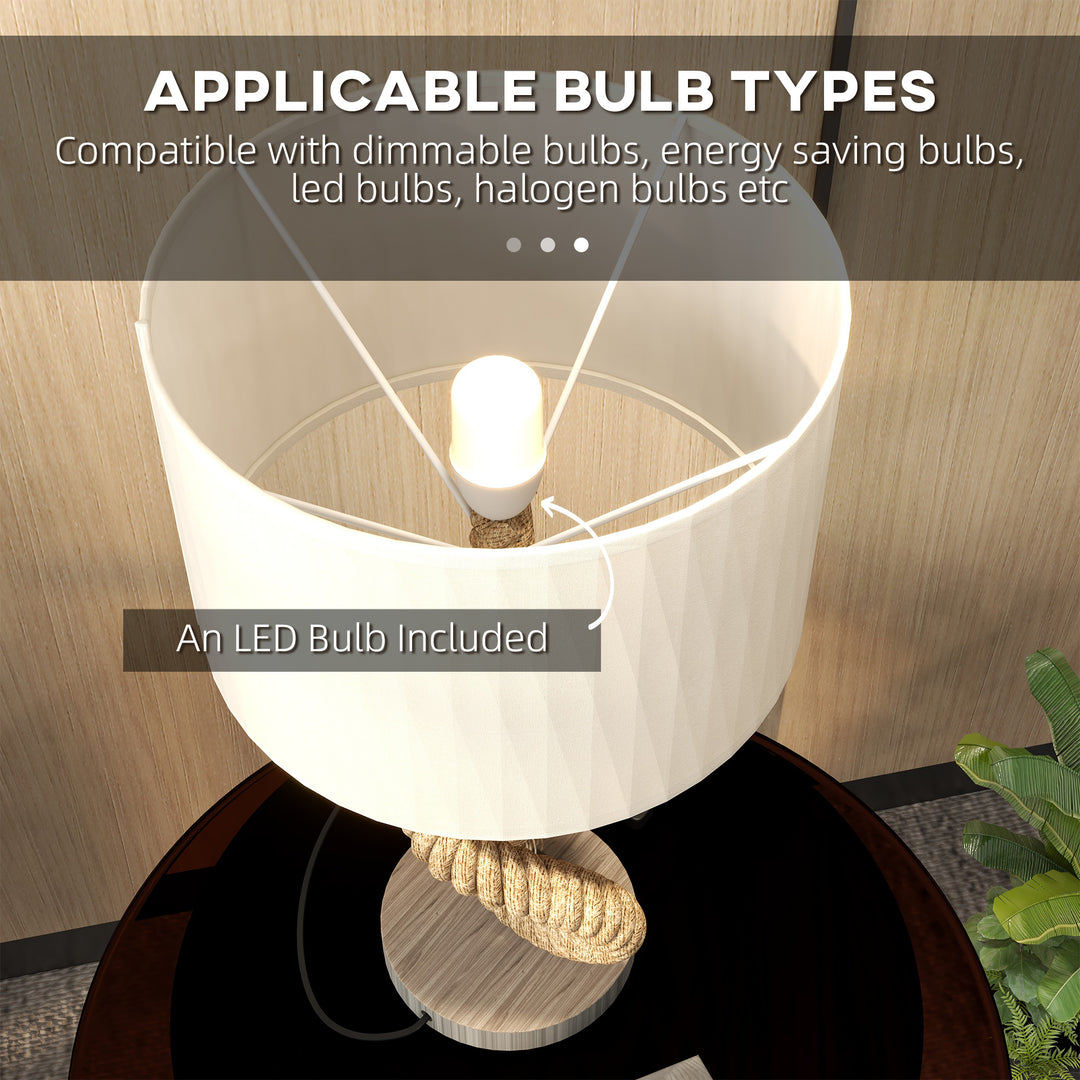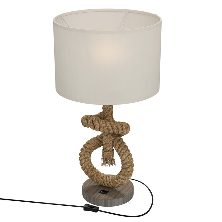 - Nautical style, unique hemp rope base with linen fabric lampshade and distressed wood colour base