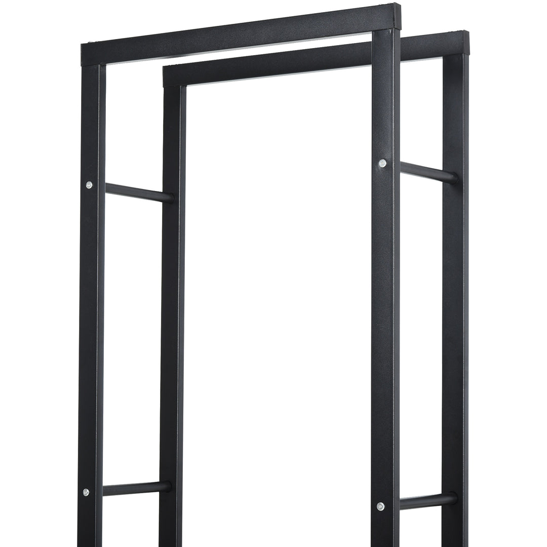 Let the simplistic design and tough construction of this firewood rack from HOMCOM hold your logs in style. Built from metal in a finish to protect against rusting and light wear, it is crafted into a medium 150cm x 40cm design which can support up to 100kg. The double-front design allows air to circulate around, helping to prevent moisture, rotting and damp build-up to keep the wood fresh and good to use. A piece to stand proud and beautifully in your home or outdoor cabin.