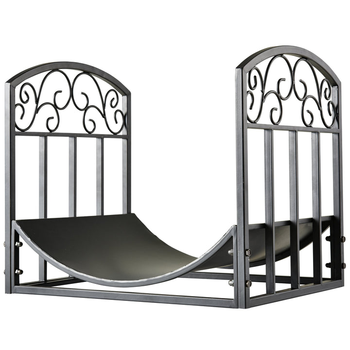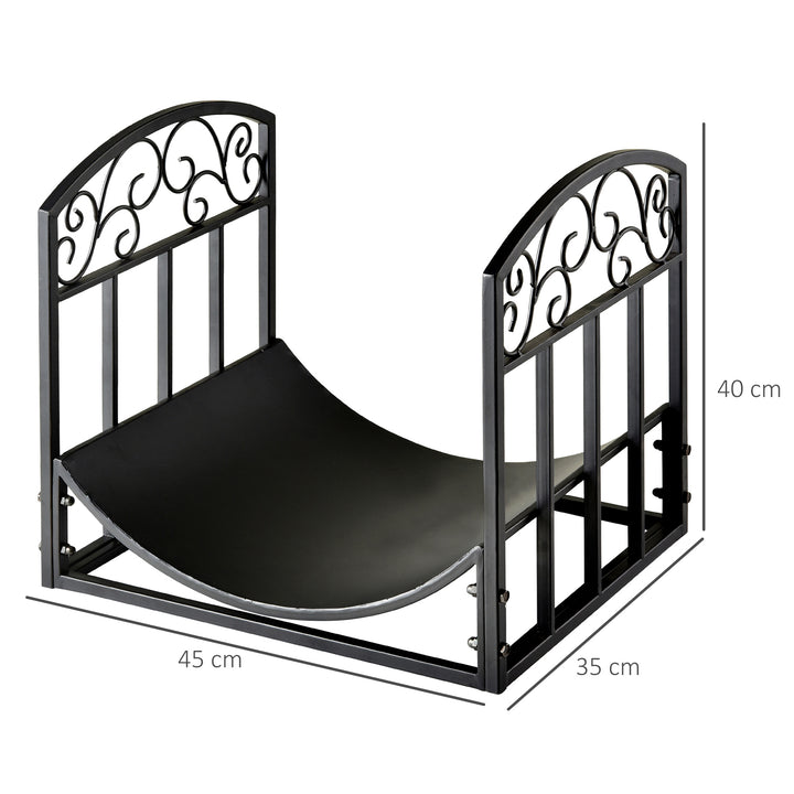 Outsunny Wrought Iron Inner Arced Wood Log Holder Indoor Outdoor Storage Shelf w/ Elegant Scrolls Rust-Resistant Stacker Black