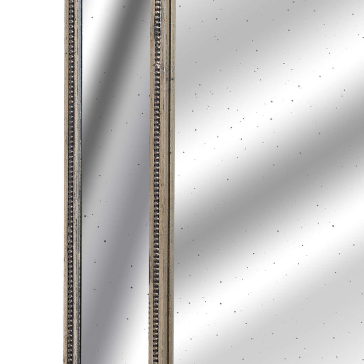 A meticulously designed wall mirror that blends artistic expression with functional grandeur, showcasing a hand-painted antique metallic finish that adds depth and character to any space. The deliberately distressed glass treatment creates an air of heritage and authenticity, making each piece uniquely appealing. Standing at an imposing height, this mirror serves as both a practical necessity and a defining aesthetic element. Its sleek profile and metallic tones make it an ideal complement to a range of decorative accessories, particularly the Watercolour Fern artworks in washed wood frames, which echo its refined character. For enhanced visual impact, consider pairing with the Black and Gold Skeleton Clock, whose metallic accents harmonize perfectly with the mirror's finish. The addition of the White Orchid in Stone Pot nearby would create a stunning reflection, multiplying the visual interest of your display. This mirror's versatility allows it to adapt seamlessly to various interior styles, from classical to contemporary, making it an excellent investment piece for retailers catering to diverse customer preferences