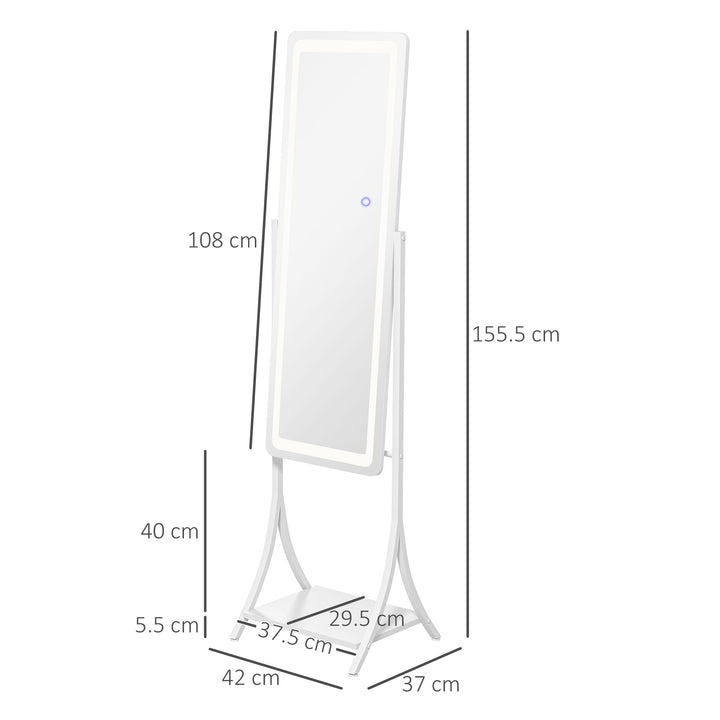 Illumination, day and night, so you can get ready - whenever. This HOMCOM full-length mirror is a classic piece, with a contemporary twist: it comes with an outer LED light to illuminate the mirror whenever you need it. Choose between warm white, white and cool white - with adjustable brightness too. Set the mirror angle to 70°, 75°, 85° or 90°; the full length size is perfect for seeing your whole outfit. Complete with a handy bottom shelf.
