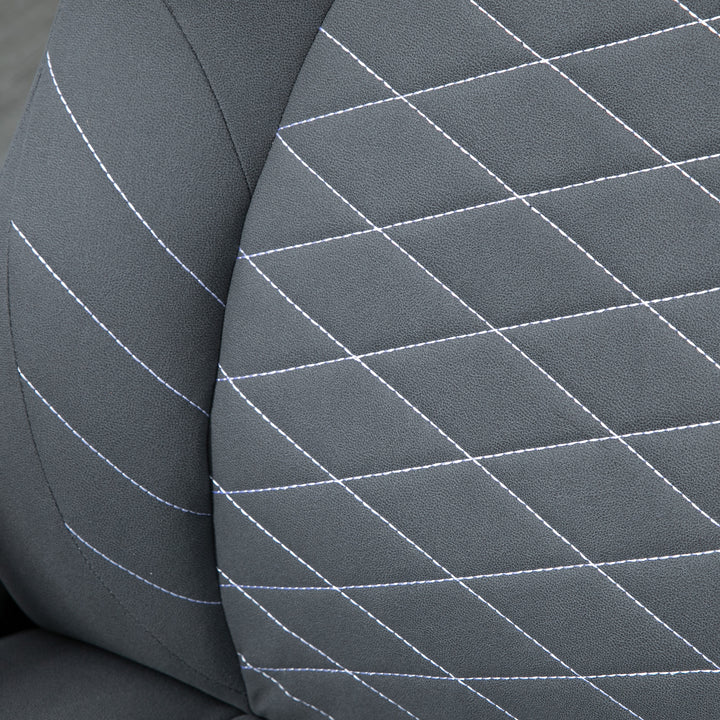 Style says hello to comfort with this Vinsetto office chair. Filled with sponge padding so you can sit for periods, it comes with contrasting stitching and microfibre upholstery: looks great. Adjust the height between 46cm and 56cm - great for working at different levels. The high back and flip-up armrests give your body support. The back rocking motion is soothing. Complete with five wheels to move easily.