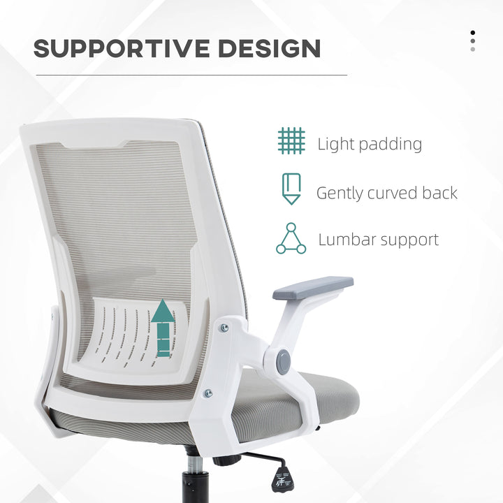 This Vinsetto computer chair is great for everyday working. A simple design, with plenty of comfort: the padded seat, flip-up armrests and high back. Mesh covering on the back allows air to circulate gently. Comfort and functionality, all day long.