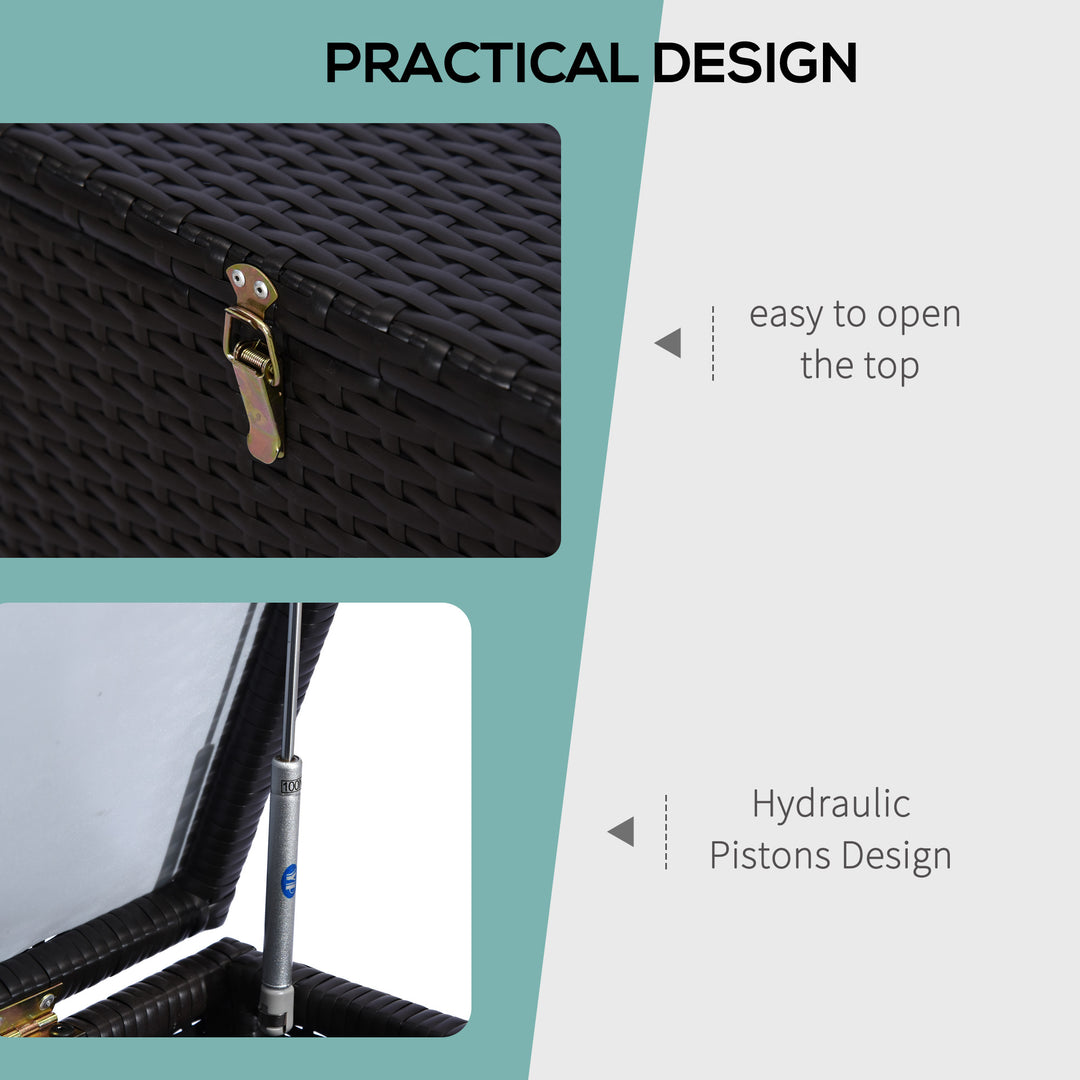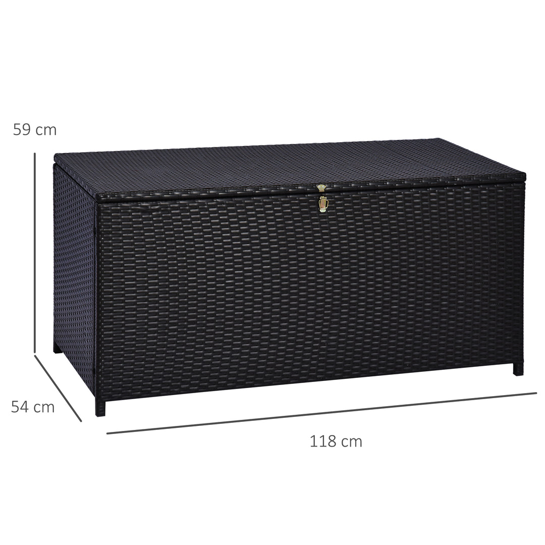 This Outsunny Rattan box is an ideal item to have in your garden or patio area. It is great place to store your cushions for your rattan furniture or to store anything which you need access to quickly. Made with a metal frame and covers with PE rattan, to match your existing outdoor furniture. The lightweight materials make it an effortless job to move it around if required. This is a great solution for all your storage needs, with the ability to match any décor.