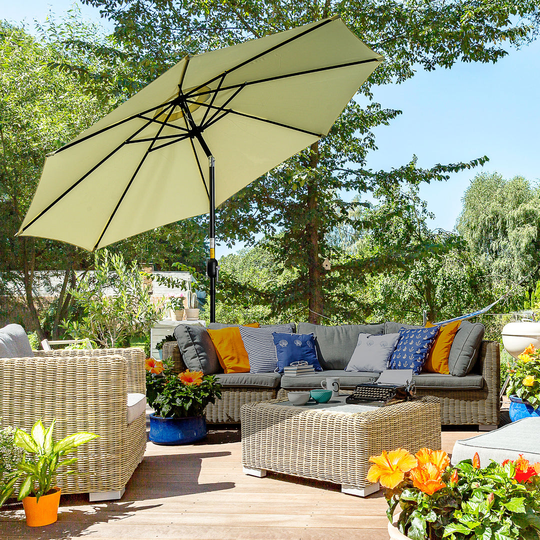 Transform your summer spent outdoors forevermore - go for sunshades for garden from Outsunny, and enjoy the sun safely. A steel pole for the main structure keeps the patio umbrella steady, fitted with an adjustable-angle canopy which covers a large area for protection. The canopy and structure are connected with eight ribs for extra strength. The large garden parasol is fitted with a crank handle, which allows it to be opened and closed swiftly. And to pack away? Simply unscrew the poles.