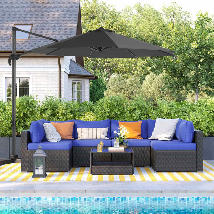 SONGMICS 3 m Garden Patio Cantilever Parasol, Offset Banana Hanging Umbrella, Sunshade with UPF 50+ Protection, 360° Rotation, Adjustable Tilt, Crank for Opening Closing, with Base, Grey GPU35GY